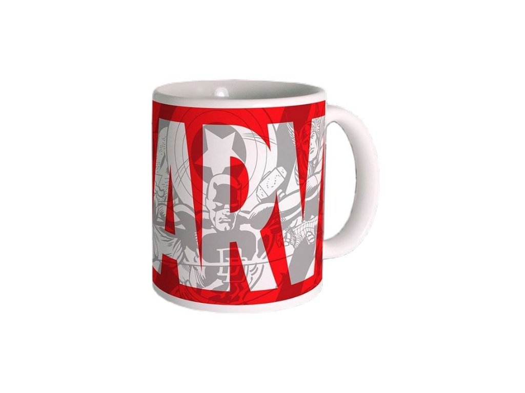 Ten pravý hrnek pro každého fanouška komiksů od Marvelu! Keramický hrnek zdobí velké marvelovské logo a na jeho pozadí se objevují hrdinové z komiksů.