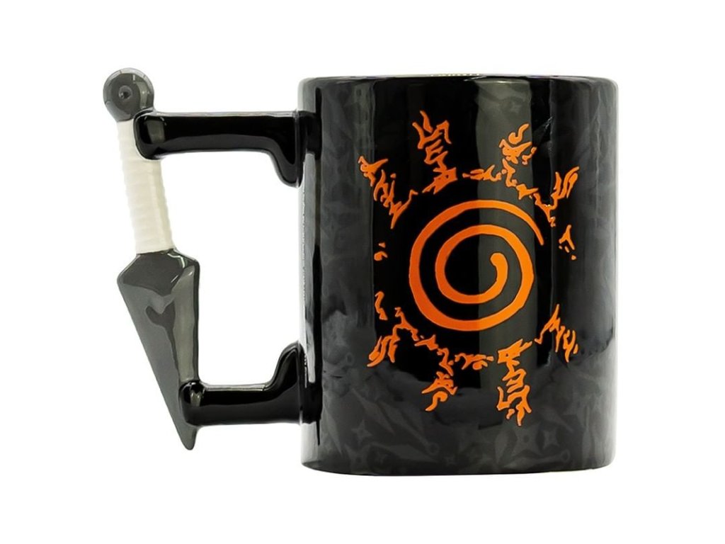 Pěkný hrnek pro fanoušky japonské mangy Naruto Shippuden a ninjů z vesnice Konoha má ucho tvarované do podoby obávané zbraně Kunai. Hrnek není vhodný do myčky nádobí a mikrovlnky.