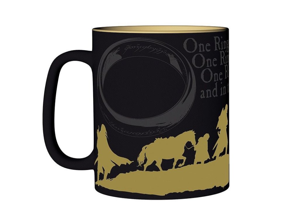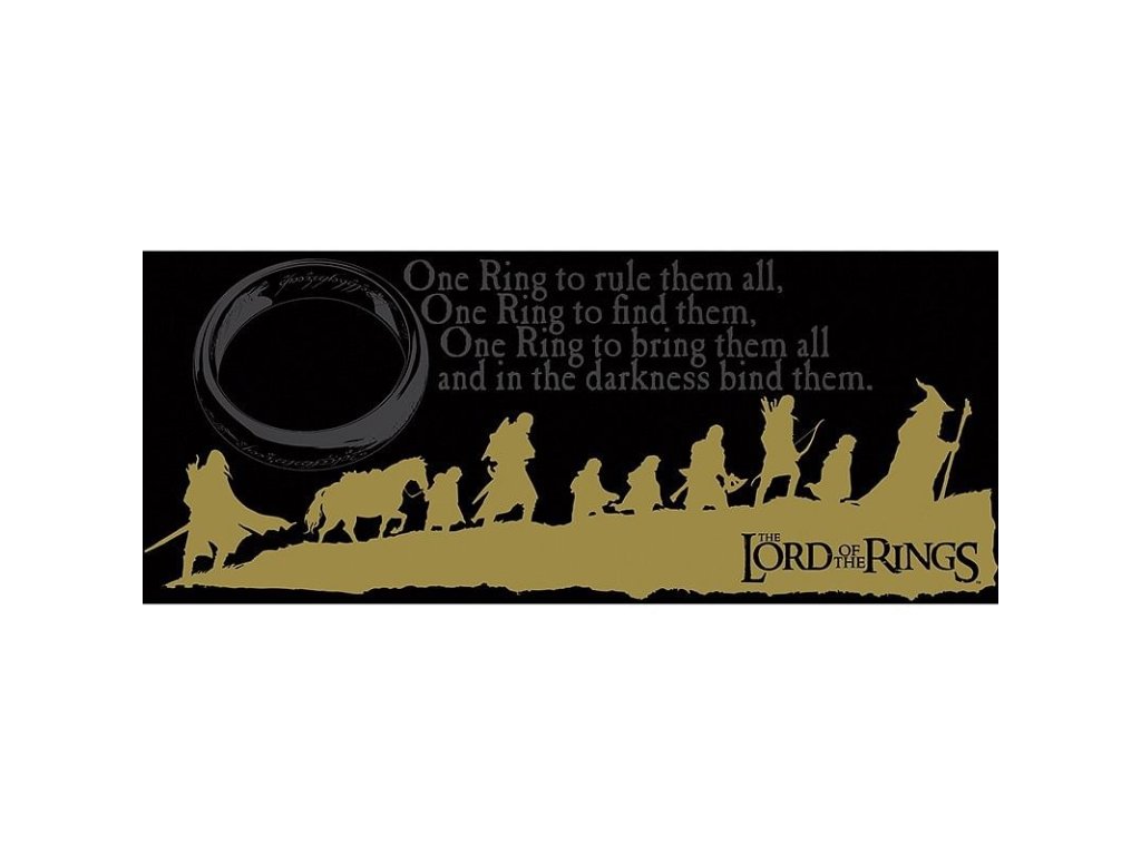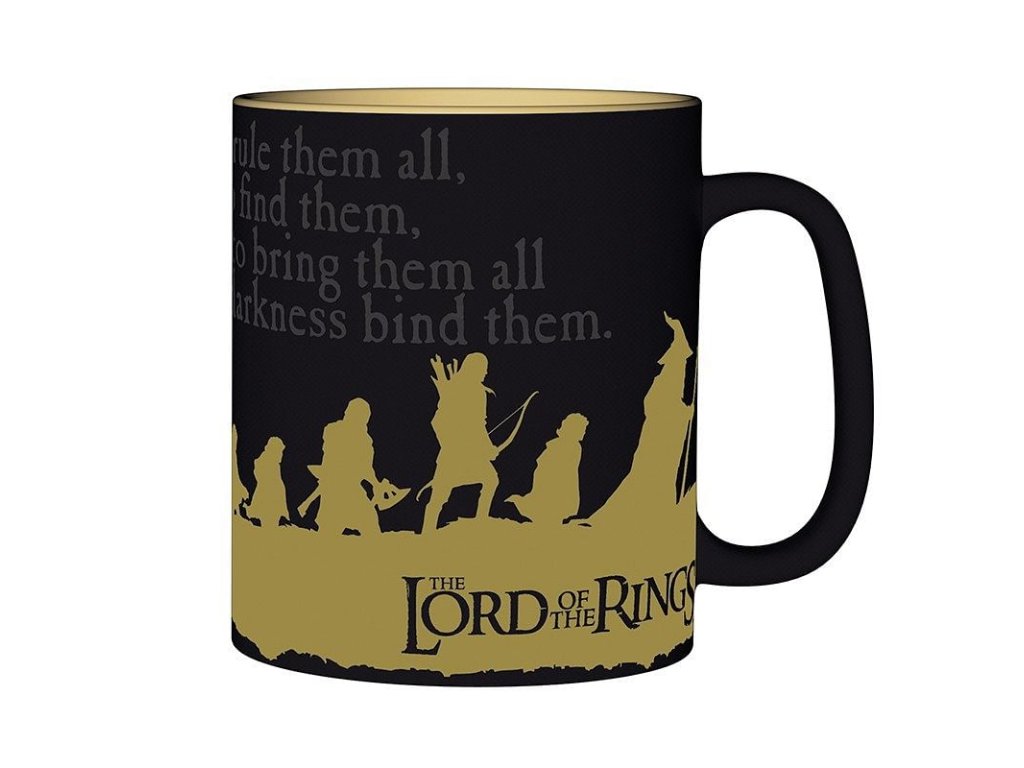 Vydejte se spolu se Společenstvem na výpravu do Středozemě, spolu s tímto hezkým keramickým hrnkem pro milovníky a fanoušky Pána prstenů! Hrnek zdobí grafika putujícího Společenstva, Prstenu moci a slavný verš, jenž se k němu váže. One ring to rule them all, one ring to find them, one ring to bring them all and in the darkness bind them Hrnek není vhodný do mikrovlnky a myčky nádobí.