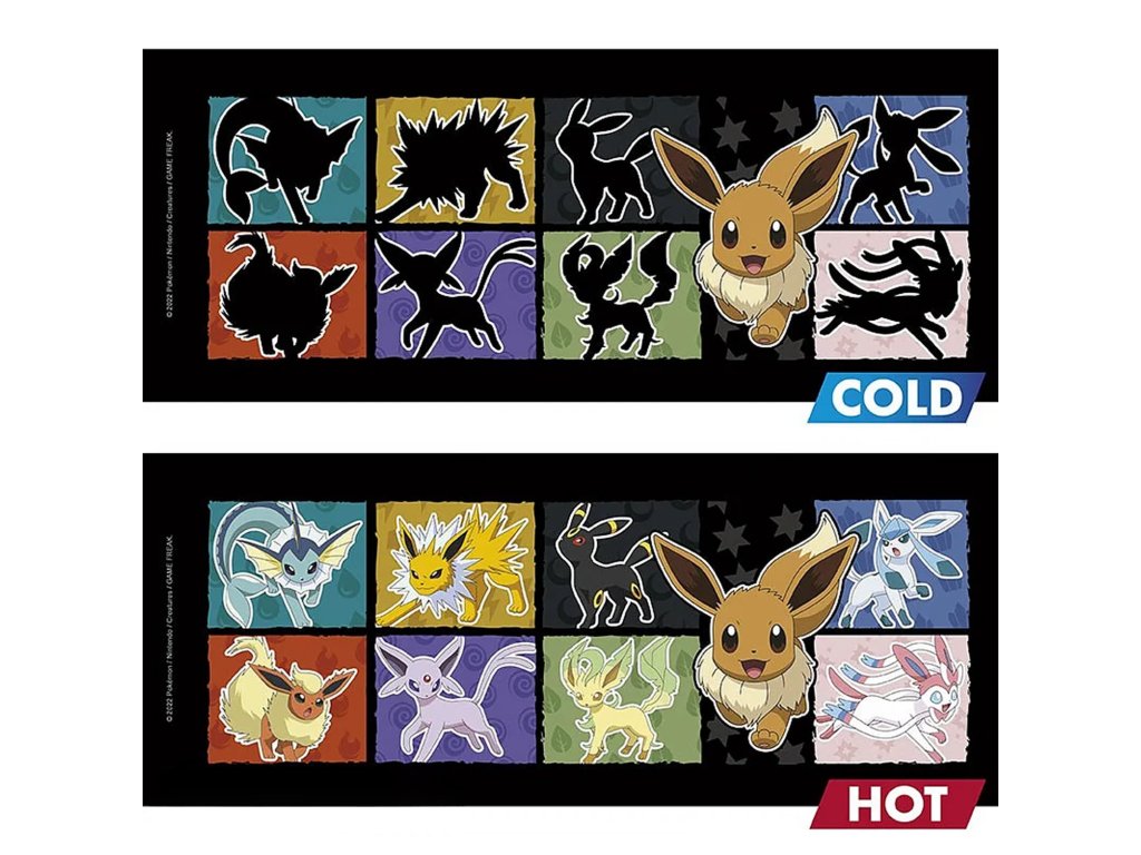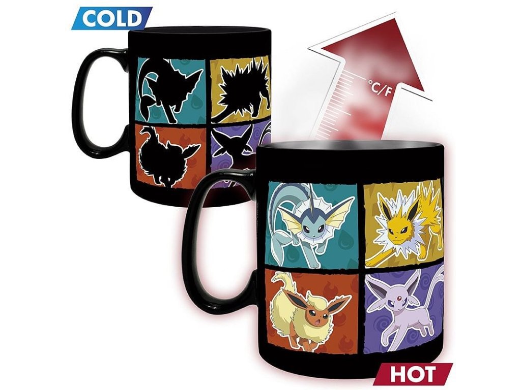 Naplňte velký černý hrnek s Pokémonem Eevee oblíbeným teplým nápojem a sledujte, jak vám ukáže všechny své podoby! Hrnek není vhodný do mikrovlnky a myčky nádobí.