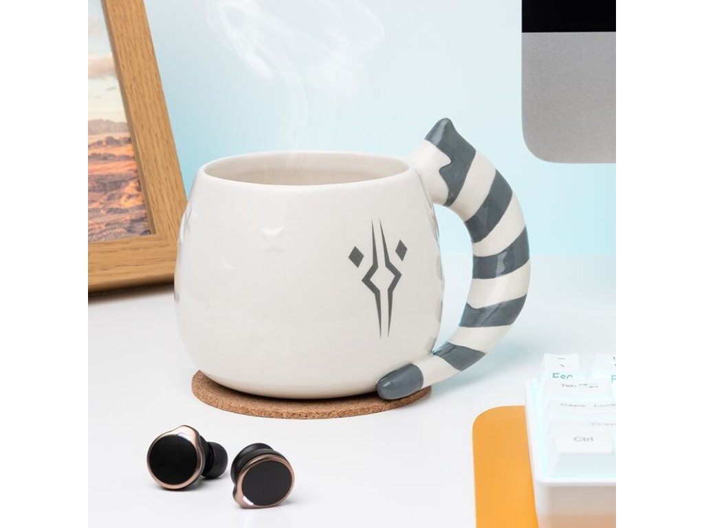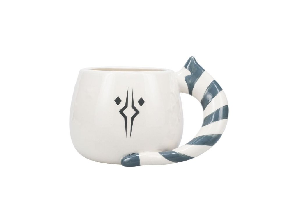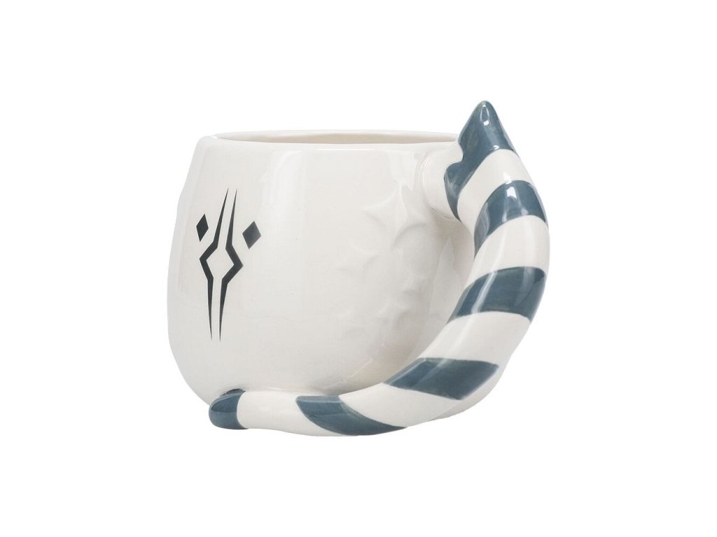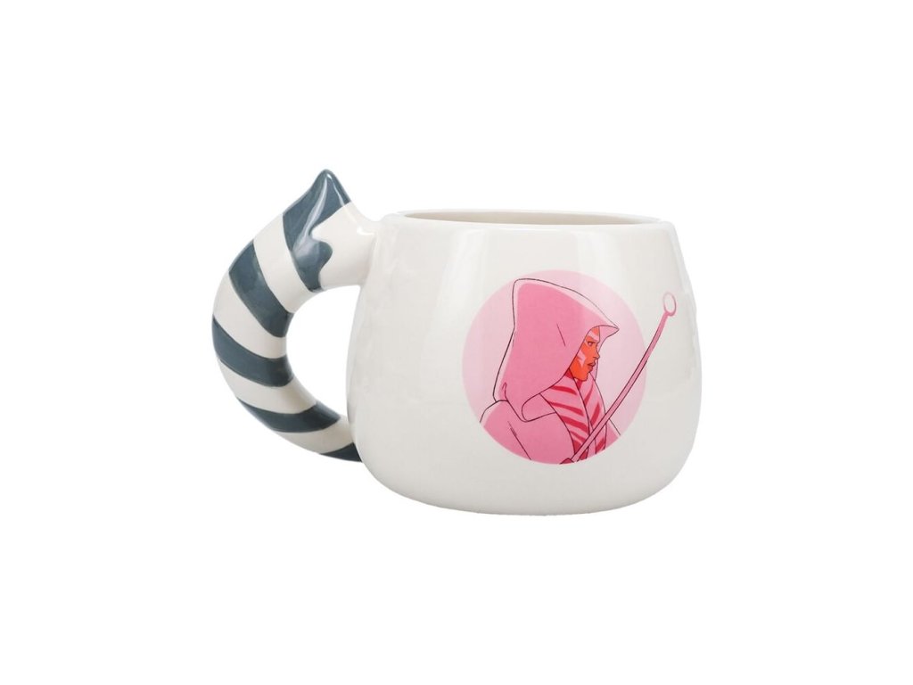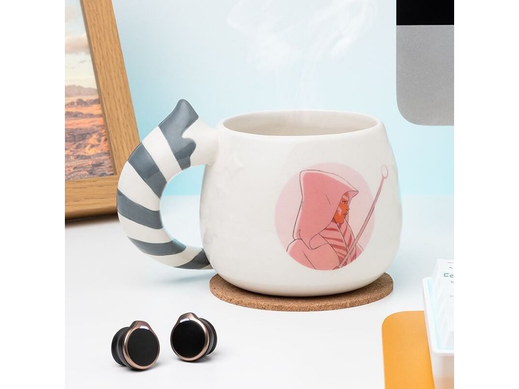 Hezký bílý hrnek s tvarovaným uchem a obrázkem Ahsoky Tano podle jejího ztvárnění v seriálu The Mandalorian. Skvělý hrnek pro fanoušky Star Wars - Hvězdných válek!