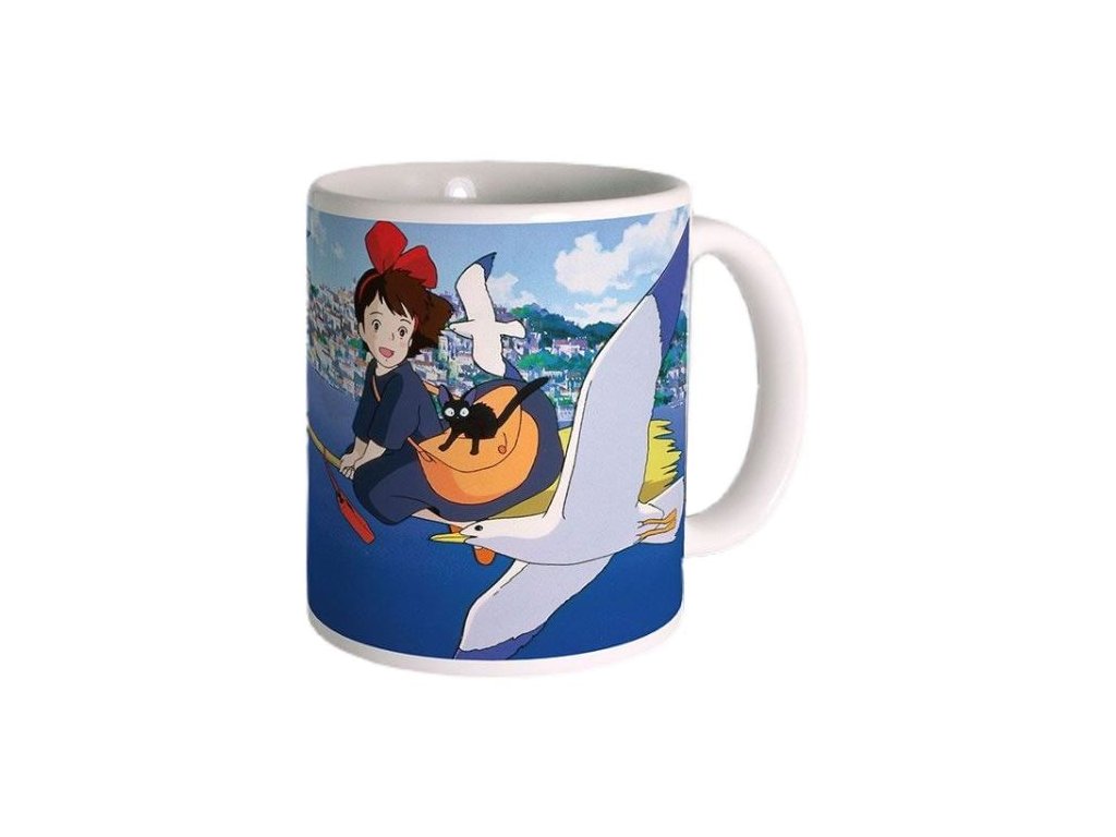Keramický hrnek s grafikou podle japonského anime filmu Kiki s Delivery Service (Doručovací služba čarodějky Kiki) z produkce Studia Ghibli.