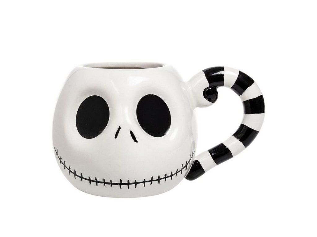Úžasný 3D hrnek ve tvaru lebkyJacka Skellingtona potěší všechny fanoušky nevšední muzikálové pohádky Nightmare Before Christmas - Ukradené Vánoce Tima Burtona! Hrnek není vhodný do mikrovlnky a myčky nádobí.