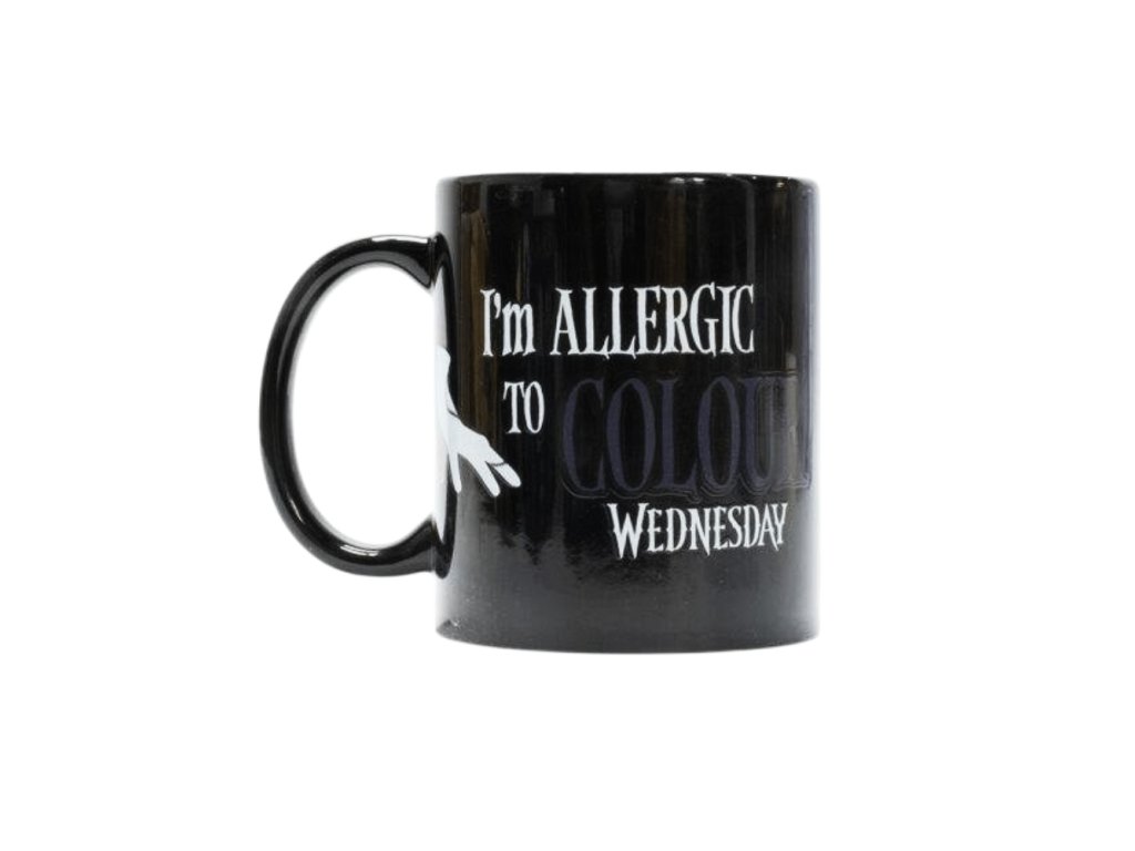 Napij se s trochou černého humoru z hrnku Wednesday I m Allergic to Colour ! Tento hrnek o objemu 330 ml má vtipný design inspirovaný Wednesday Addamsovou a je ideální pro milovníky, kteří oceňují její jedinečný styl. Je vyroben z vysoce kvalitní keramiky a je ideální pro vychutnávání oblíbených horkých nápojů. Hrnek mění díky zeplotě grafiku. Tento jedinečný dárek dodá tvému každodennímu rituálu s kávou nebo čajem nádech gotického kouzla! Hrnek není vhodný do mikrovlnky a myčky nádobí.