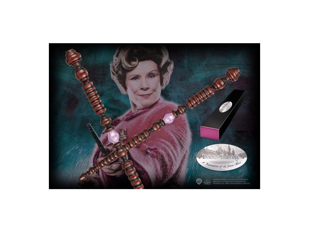 Replika kouzelnické hůlky panovačné Dolores Umbridgeové, první náměstkyně ministra kouzel Kornelia Popletala z Harryho Pottera. Hůlka je dlouhá cca 27 cm, součástí dárkové krabičky je kovová jmenovka.