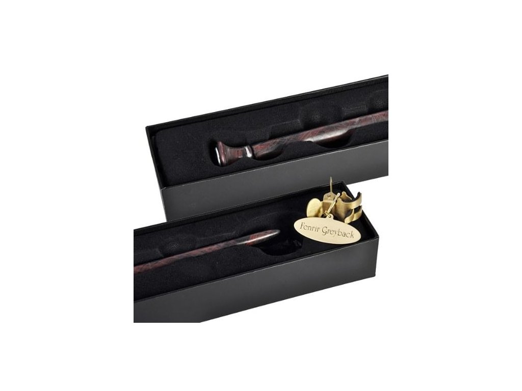 Replika kouzelnické hůlky vlkodlaka smrtijeda Fenrira Šedohřbeta. Hůlka je dlouhá cca 35 cm, vyrobena ze syntetické pryskyřice. Součástí je stylová polstrovaná krabička a kovová jmenovka.
