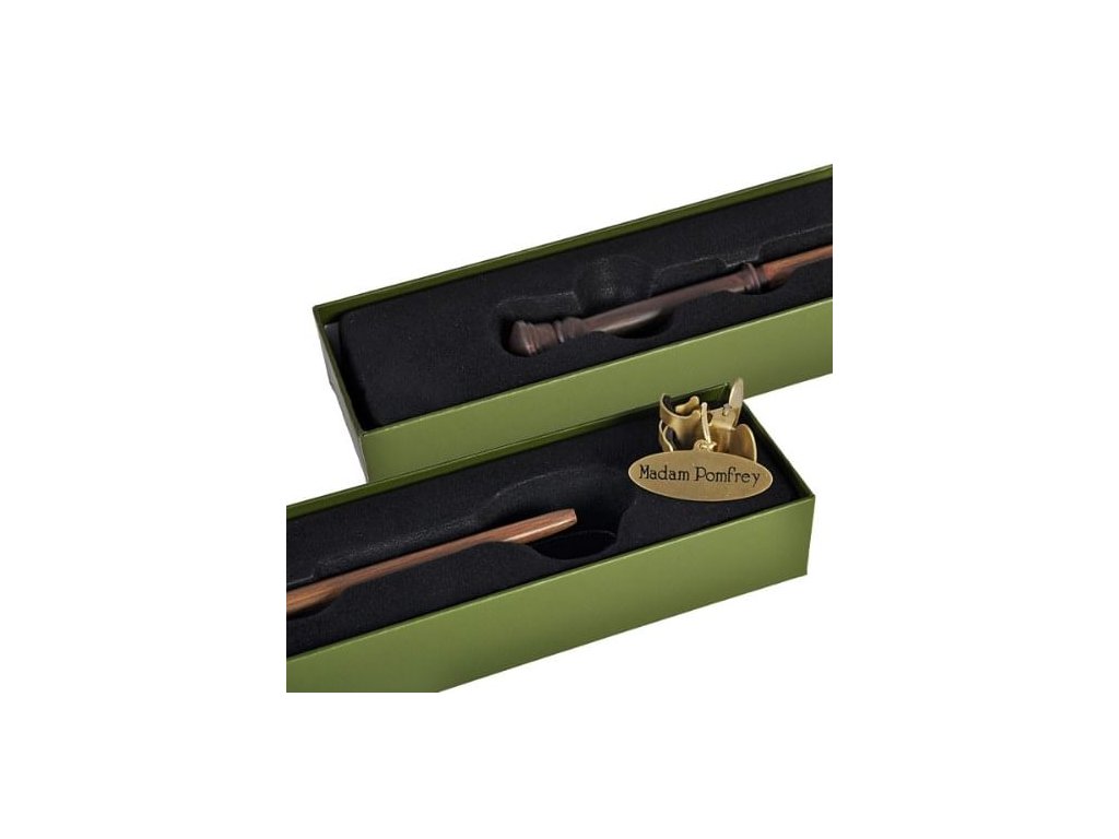 Replika kouzelnické hůlky Madam Pomfreyové, kouzelnické léčitelky, která pracuje na bradavické ošetřovně. Hůlka je dlouhá cca 32 cm, vyrobena ze syntetické pryskyřice. Součástí je stylová polstrovaná krabička a kovová jmenovka