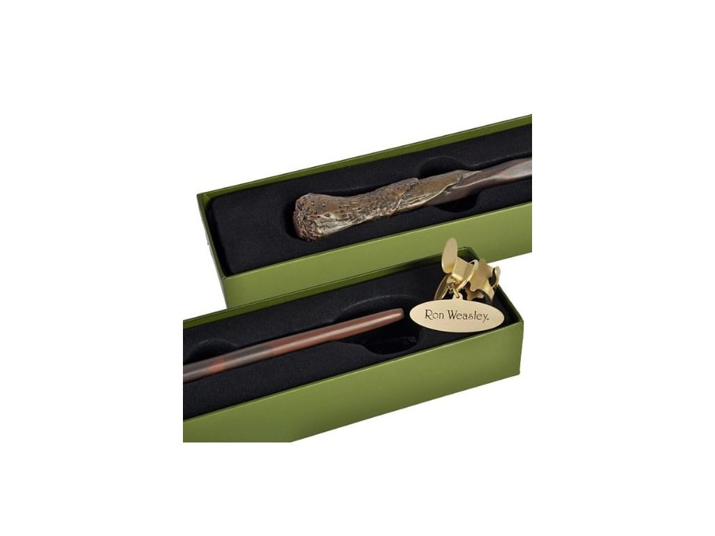Replika kouzelnické hůlky Rona Weasleyho, původně vyrobené z vrbového dřeva s jádrem z žíně jednorožce. Hůlka je dlouhá cca 35,5 cm, vyrobena ze syntetické pryskyřice. Součástí je stylová polstrovaná krabička s kovovou jmenovkou.