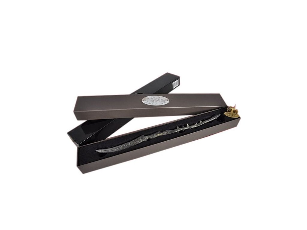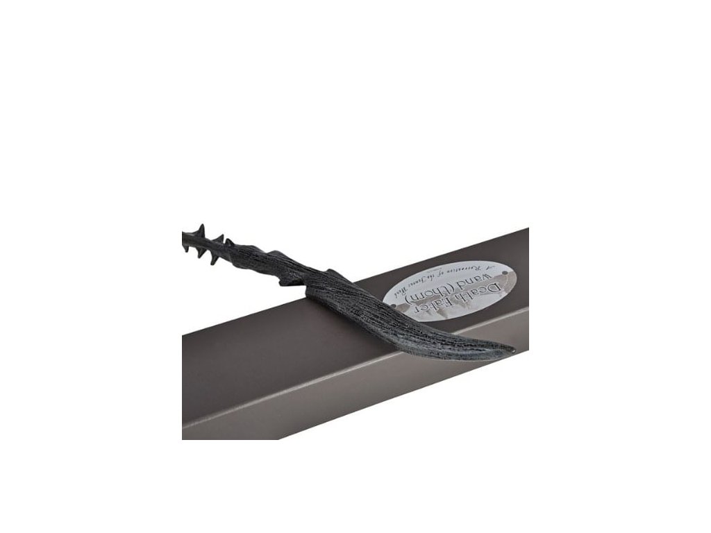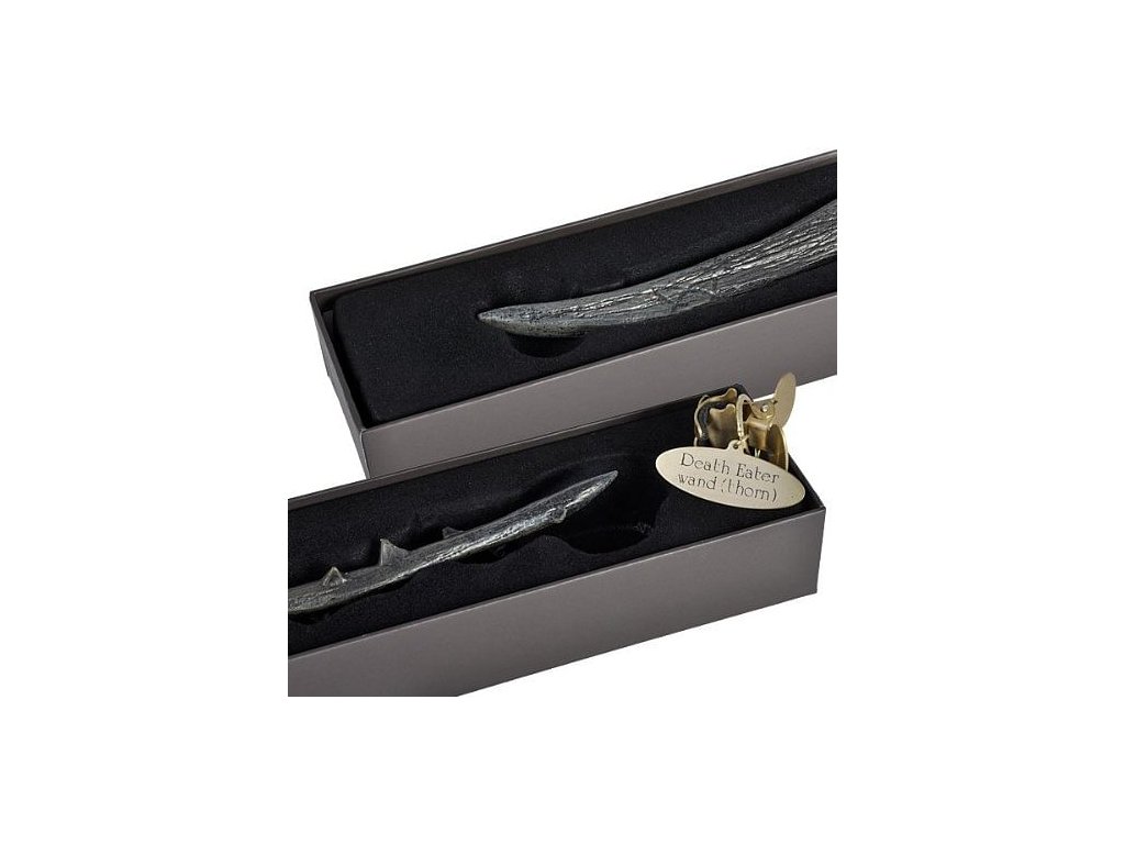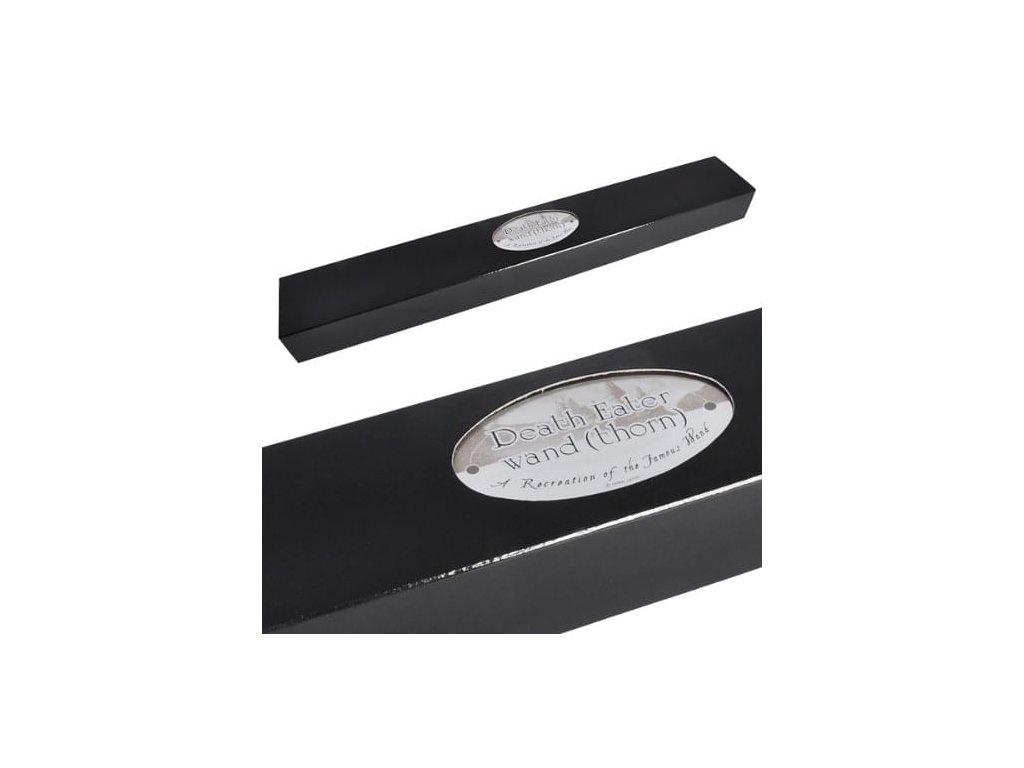 Replika stylové kouzelnické hůlky jednoho ze smrtijedů, dlouhá cca 35 cm, vyrobena ze syntetické pryskyřice. Součástí je stylová polstrovaná krabička a kovový štítek.