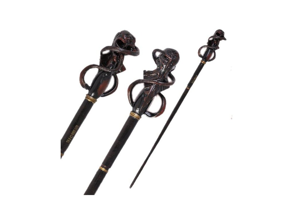 Replika kouzelnické hůlky jednoho ze smrtijedů z filmového zpracování Harryho Pottera. Hlavice je zdobená plastickým vyobrazením Voldemortova znamení zla.