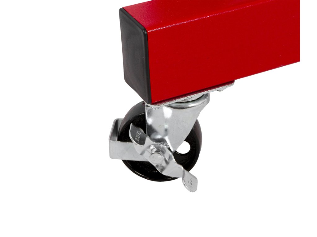 Vysokou stabilitu zajišťuje 6 otočných koleček. Ideální skladování díky skládací konstrukci se sklopným ramenem i podvozkem.