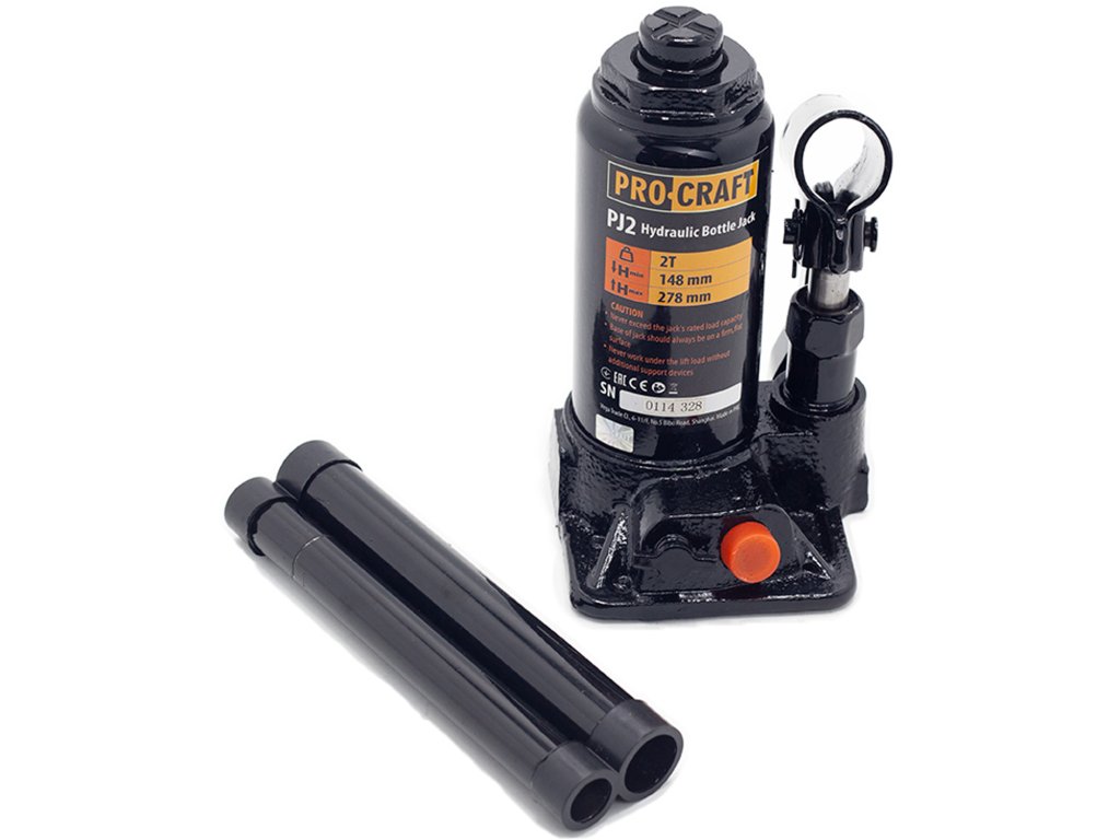Hydraulický zvedák Procraft PJ2 je určen k zdvihání automobilů, ve stavebnictví a průmyslu. Konstrukce je z kvalitní litiny, vybavena bezpečnostním ventilem. Zvedák má zdvihací kapacitu 2 tuny a zdvihový rozsah od 148 mm do 278 mm a vybaven šroubovací patkou. Pohodlné zdvihání a plynulé spouštění břemen usnadňují práci. Součástí dodávky je tyč. Balení karton.