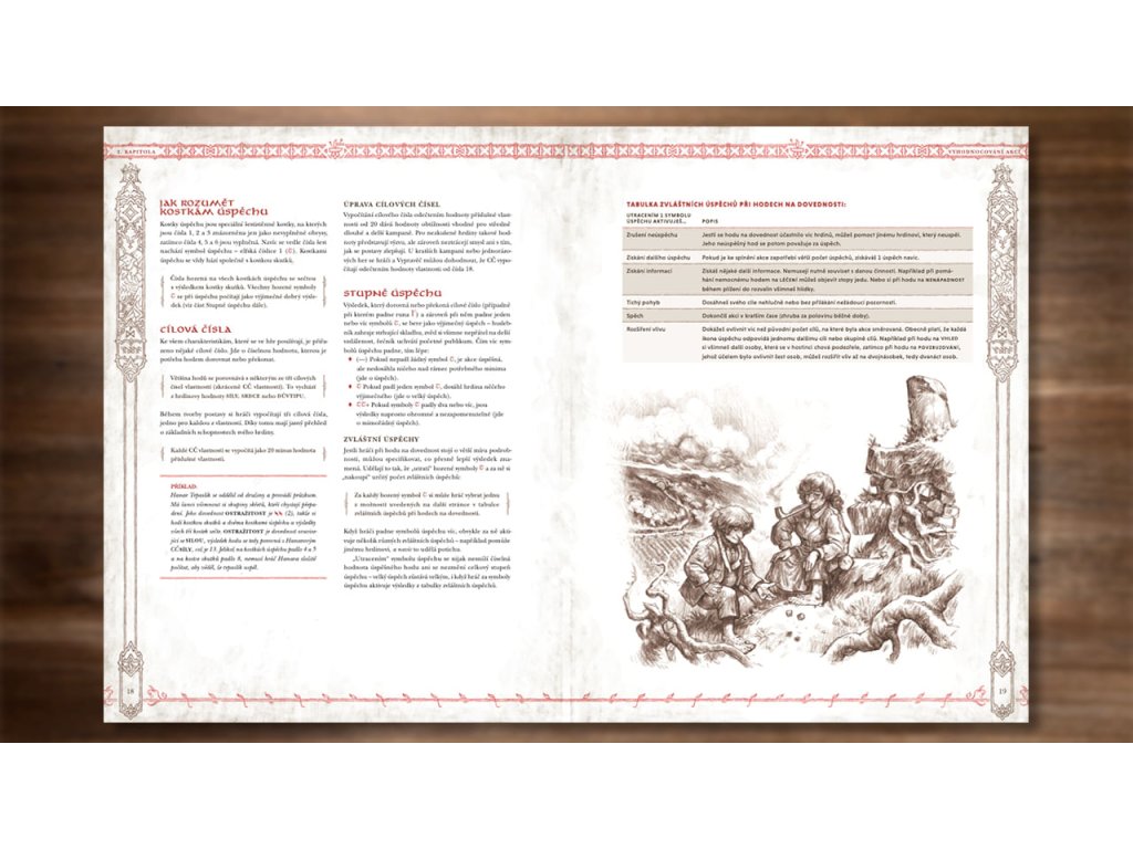 Ponoř se do fascinujícího světa RPG Jeden prsten, druhé edice hry na hrdiny zasazené do legendárního univerza J. R. R. Tolkiena, kterou navrhl Francesco Nepitello. Tato verze hry, známá jako The One Ring™, se stala jedním z nejúspěšnějších stolních RPG na Kickstarteru, kde vybrala přes 2 miliony dolarů. Očekávej aktualizovaná pravidla a nový vizuální styl, který tě vtáhne do země Eriador, tajemných a opuštěných končin západně od Mlžných hor. Stíny se vracejí Píše se rok 2965 Třetího věku a temnota se opět plíží krajinou. Před čtyřiadvaceti lety aliance elfů, lidí a trpaslíků zvítězila nad hordou skřetů a vrrků, což přineslo věk míru a prosperity. Avšak dvacet let je dlouhá doba a mír začíná slábnout. V temných zákoutích země se stíny prodlužují a podivné zvěsti o děsivých událostech začínají probouzet strach i mezi těmi nejstatečnějšími. Dobrodruzi, válečníci, učenci a tuláci - to jsou ti, kdo se odváží odhalovat pravdu skrytou za báchorkami a povídačkami. Staň se hrdinou Středozemě RPG Jeden prsten umožňuje hráčům zažít magii Středozemě na vlastní kůži. Cestuj krajinou, odhaluj náznaky návratu Stínu a bojuj proti nepřátelům. Aktualizovaná pravidla pro cestování, boj a setkání s ikonickými postavami Středozemě ti nabídnou nezapomenutelné herní zážitky. Vypravěči v příručce najdou detailní rady pro tvorbu kouzelných pokladů, pravidla pro Stín a Oko Mordoru, a podrobné informace o mecenáších dobrodruhů, včetně Bilba Pytlíka a Gandalfa Šedého. Připravený bestiář, pravidla pro tvorbu vlastních nepřátel a kompletní dobrodružství Hvězda z mlh jsou jen některé z mnoha prvků, které tato hra nabízí. Připrav se na epická dobrodružství, která tě čekají v jedinečném světě Jeden prsten. Co je RPG a proč ho hrát? RPG (Role-Playing Game) je hra, kde hráči přebírají role postav v imaginárním světě a společně vytvářejí příběh. Tato hra je vhodná pro každého, kdo má rád dobrodružství, fantazii a kreativitu. RPG hry jako Jeden prsten poskytují úžasnou příležitost k rozvoji spolupráce, řešení problémů a strategického myšlení. Hraní RPG přináší pozitivní zážitky, jako je posilování týmového ducha, zlepšování komunikačních dovedností a především zábavu a radost z objevování nových světů. Chceš se o Jednom prstenu dozvědět více? Přečti si článek na našem blogu. Ke stažení Deník postavy (formát A4) Deník postavy (formát z knihy - Letter) Rejstřík kouzelných pokladů (formát A4) Rejstřík kouzelných pokladů (formát z knihy - Letter) Cestovní deník (formát A4) Cestovní deník (formát z knihy - Letter)