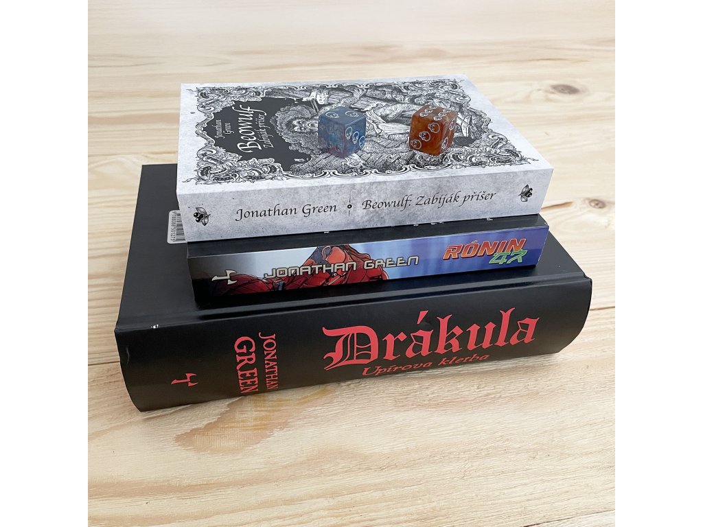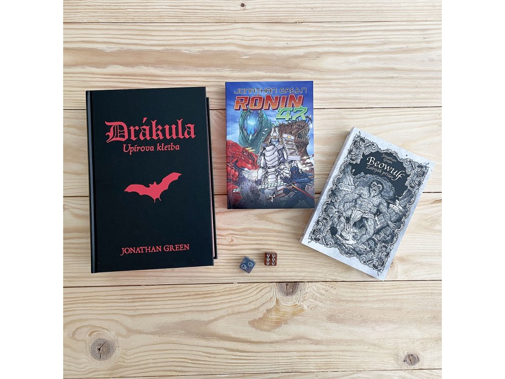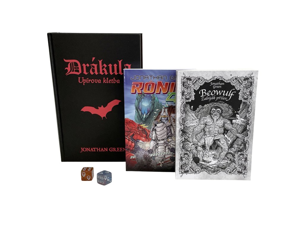 Vydej se na epickou cestu napříč legendami a mýty s kompletní sadou gamebooků od Jonathana Greena, mistra interaktivního vyprávění! Tento exkluzivní komplet obsahuje tři samostatné dobrodružné knihy: Beowulf: Zabiják příšer, Dracula: Upírova kletba a Rónin 47, které tě zavedou do světa vikingských hrdinů, krvavé viktoriánské hrůzy i samurajské cti. Beowulf: Zabiják příšer – Staň se legendárním hrdinou Beowulfem a postav se děsivým monstrům, včetně obávaného Grendela. Tvůj meč a odvaha rozhodnou o osudu království i tvé vlastní slávě. Drákula: Upírova kletba – Vstup do temného viktoriánského Londýna, kde se ukrývá prastaré zlo. Čeká tě boj proti samotnému hraběti Drákulovi, plný napětí, hrůzy a děsivých střetů. Rónin 47 – V roli osamělého samuraje bez pána se vydáváš na cestu za pomstou a ctí. Čeká tě putování skrz futuristické Japonsko, nebezpeční protivníci a morální volby, které tě navždy změní. Každý gamebook je samostatným zážitkem, kde ty rozhoduješ, jak se příběh bude vyvíjet. Očekávej nelítostné souboje, napínavé volby a bohatý herní svět – ať už jako legendární válečník Beowulf, lovec upírů nebo osamělý rónin v bojovém mechovi.Jako dárek dostaneš ke každému kompletu netradiční barevné šestistěnné kostky!
