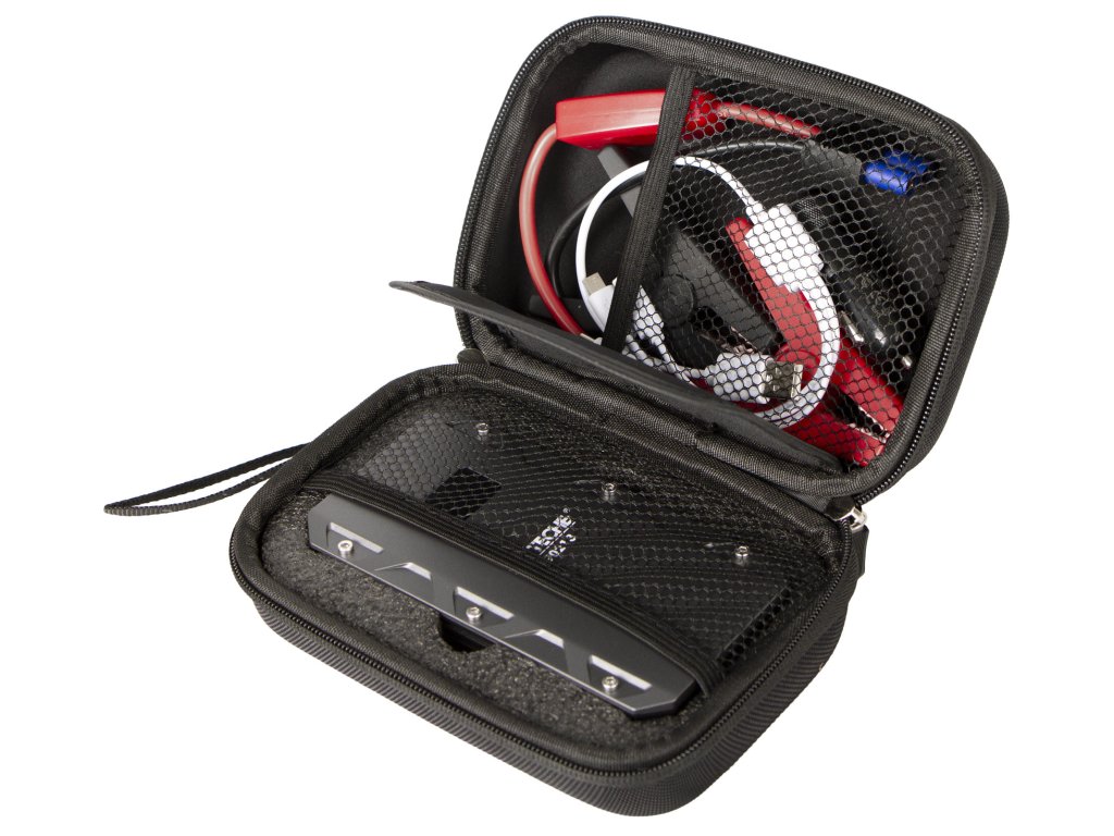 3 v 1 - jump startér, powerbanka, svítilna, kapacita 10 000 mAh, špičkový proud až 1000 A.