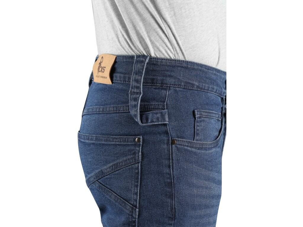 Pánské strečové džíny s užším moderním střihem nohavic. Exponovaná místa jsou vyztužena materiálem CORDURA®, který je odolný a přitom elastický, a díky tomu neomezuje v pohybu. V pase jsou poutka na opasek s plastovým přívěskem a poutkem na kladivo.