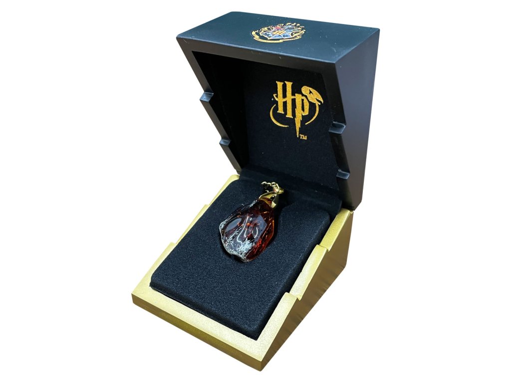 Kámen mudrců, slavný alchymistický artefakt, který se stal ústředním motivem prvního dílu Harryho Pottera. Tato replika je cca 3,5 cm vysoká, opatřená pozlaceným řetízkem. Součástí je stylová krabička s černým polstrováním. Chceš-li poznat pravý kámen mudrců, hledej v sobě samém a začni tím, že poznáš sama sebe .R. Fludd