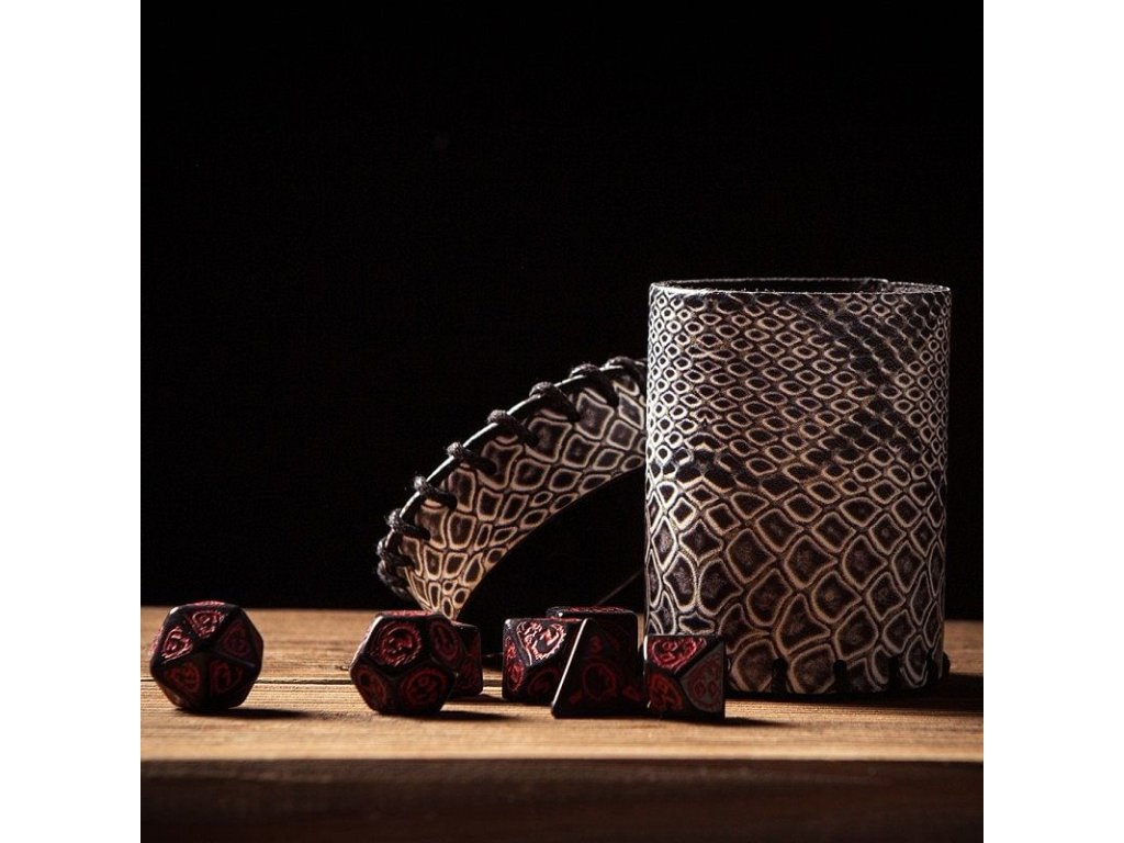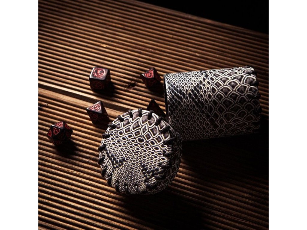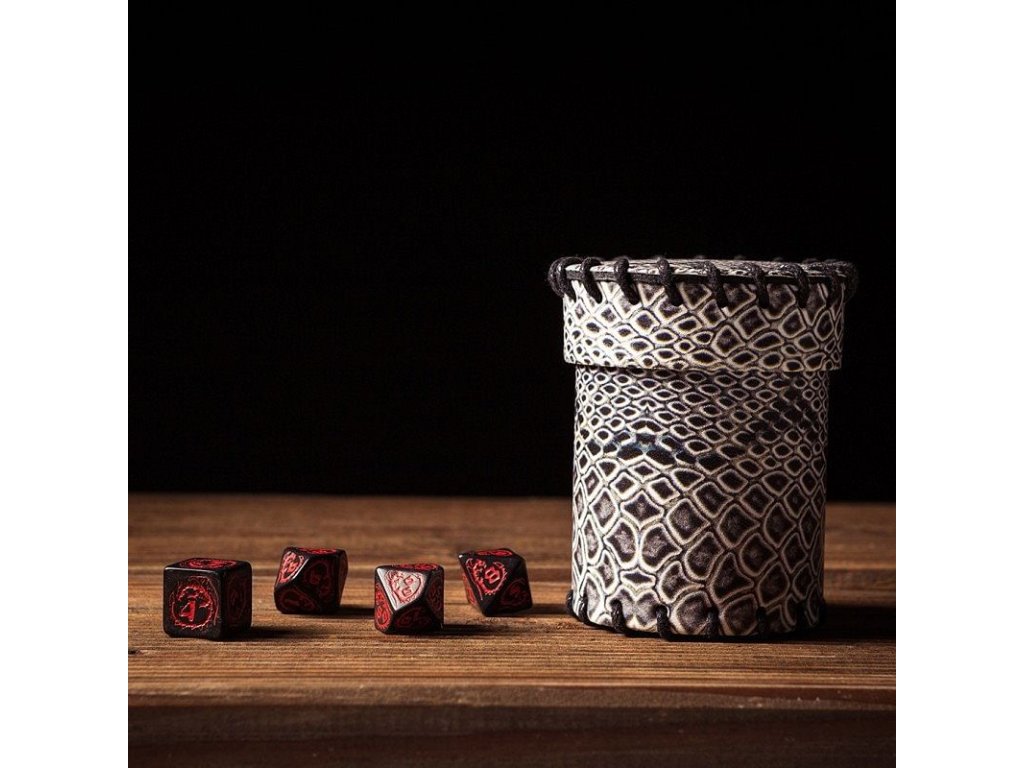 Laminovaný kelímek na kostky s víčkem v barvách kůže vzácného draka se hodí všude tam, kde se hází, vrhají a padají kostky! Rozměry kelímku jsou 8,5 x 5,5 cm.