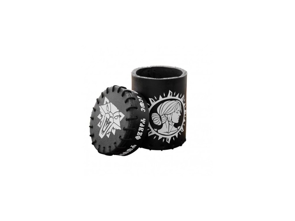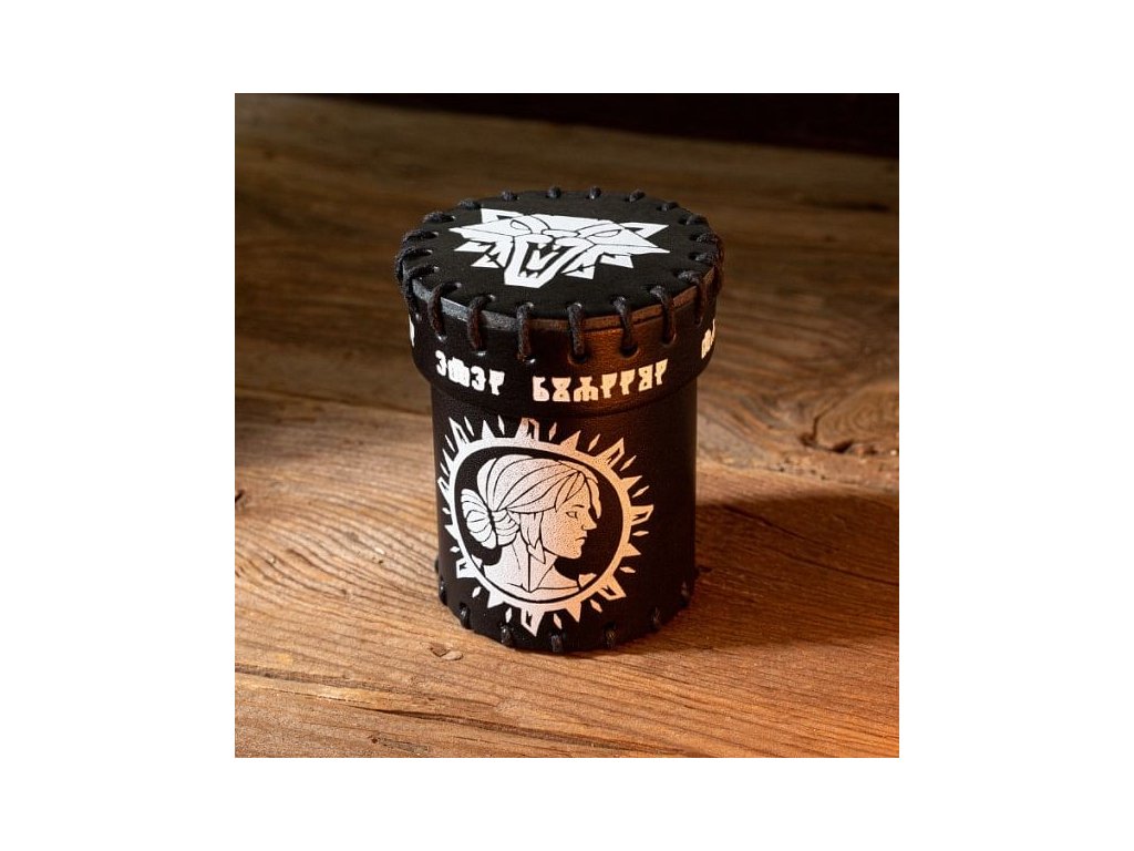 Černý kožený kelímek na kostky s podobiznou princezny Ciri, Lvíčete z Cintry, a symbolem školy Kočky ze Zaklínače bude skvělým pomocníkem pro vaše hraní a hry! Šikovný doplněk pro hráče her na hrdiny a deskových či kostkových her.
