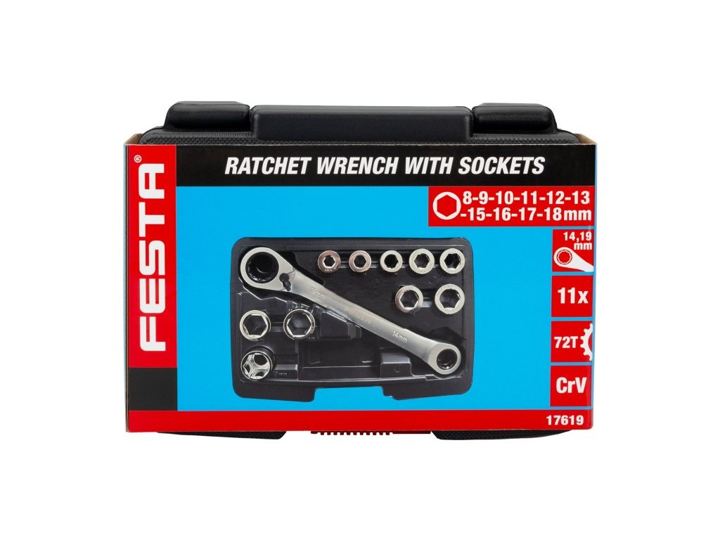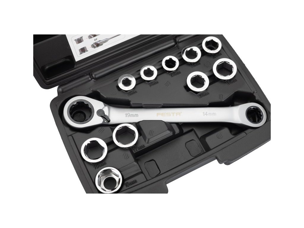 - sada - ráčnový klíč 14 / 19 mm s vyměnitelnými vložkami