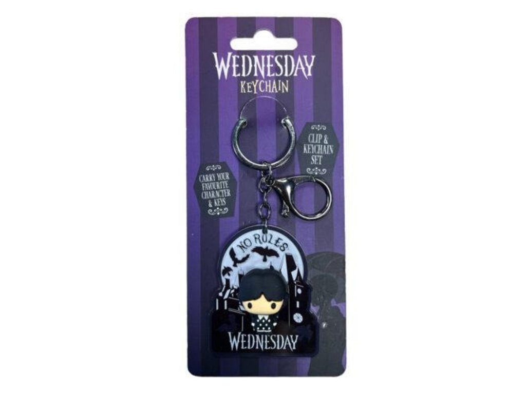 Ukaž, že pravidla nejsou nic pro tebe! Tato klíčenka s motivem No Rules je dokonalým doplňkem pro ty, kteří si chtějí udržet trochu temnoty i ve svém každodenním životě. Připni si malou Wednesday na klíče, batoh nebo na zip a neboj se být divný a jiný! Ozdob si své věci dle libosti. Buď jako Wednesday, stůj si za svým.