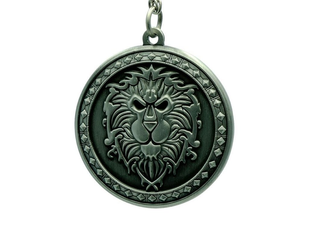 S touto pěknou kovovou klíčenkou, kterou zdobí reliéf znaku Aliance z fantasy videohry World of Warcraft, bude hned každý vědět, za kterou stranu bojujete.