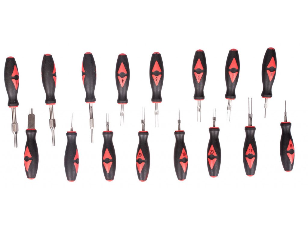 Sada 23 ks vypichováků konektorů k servisu elektrických pinů bez jejich poškození.