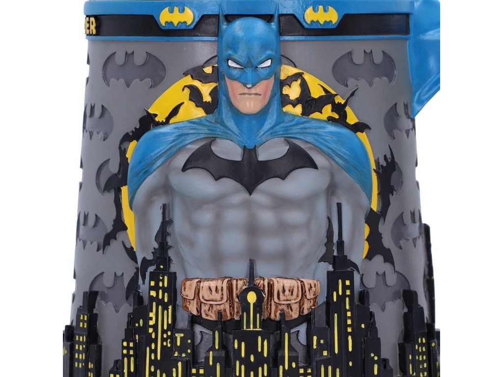 Krásný korbel pro fanoušky Temného rytíře, superhrdiny Batmana od DC Comics. Korbel nabízí řadu detailů, ucho je tvarováno do podoby netopýřího ochránce Gothamu. Uvnitř se nachází vyjímatelný nerezový insert pro snadnější údržbu, samotný korbel je z resinu (syntetická pryskyřice).