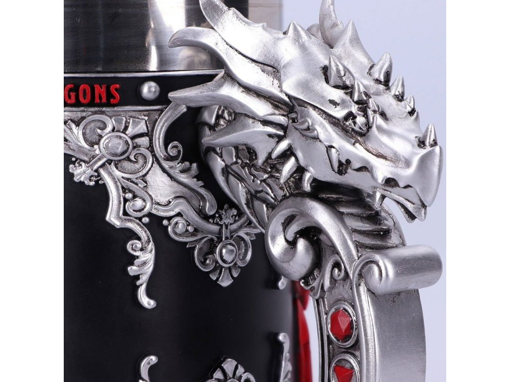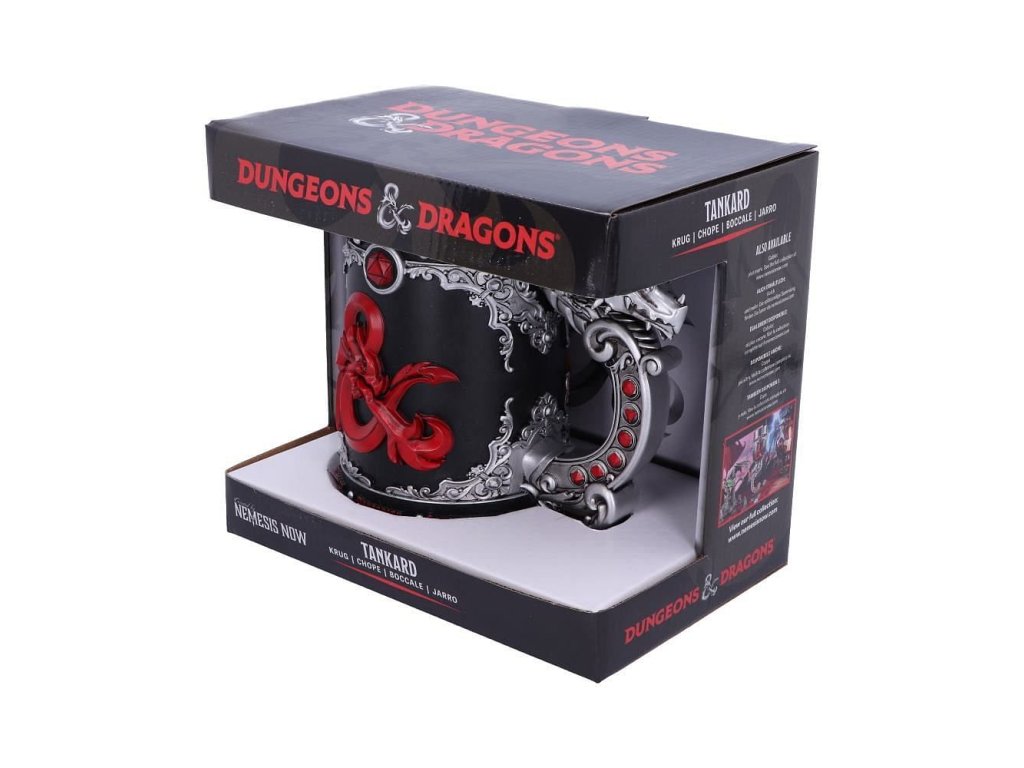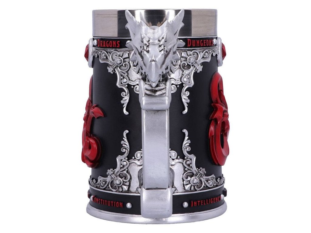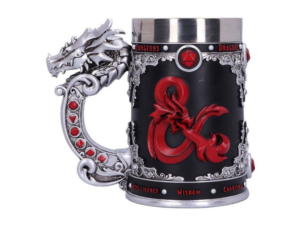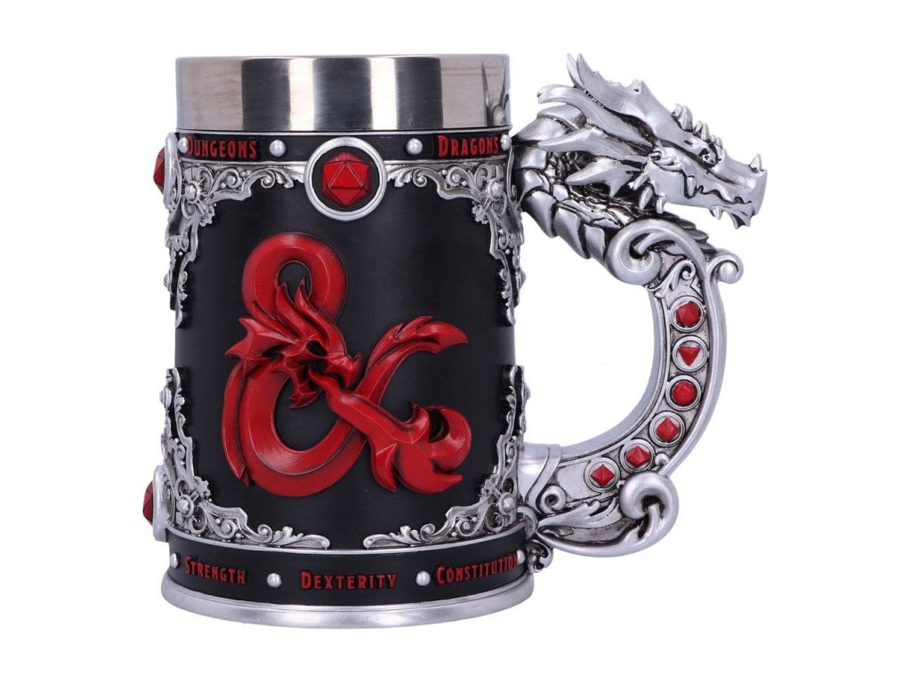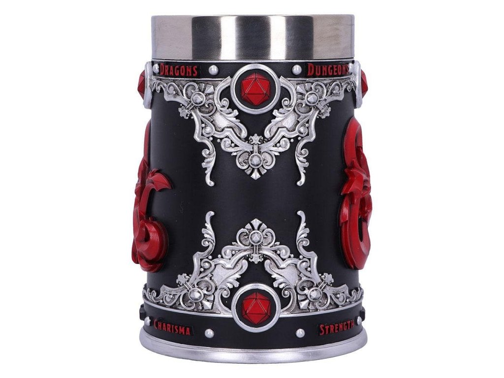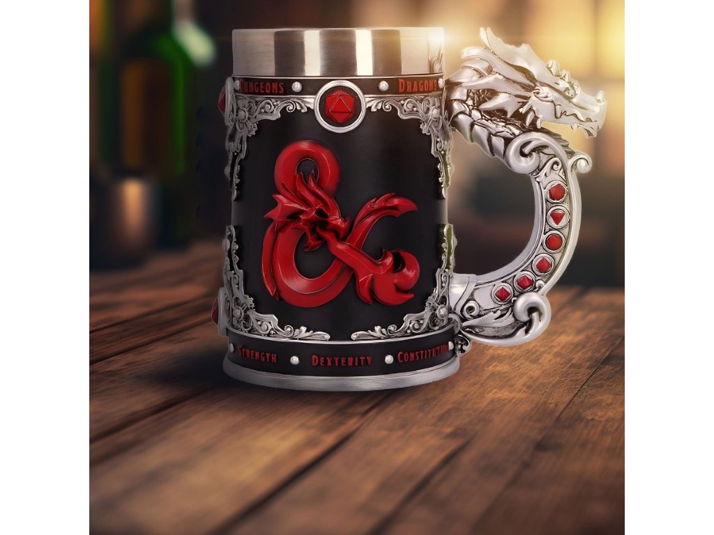 Ať už na vás uvnitř temného dungeonu, hradu či hvozdu čeká cokoliv, s korbelem, který zdobí logo oblíbené RPG Dungeons & Dragons, a názvy vlastností postav z této hry, budete vždy náležitě připraveni! Korbel má ucho tvarované do podoby draka, skvělý společník pro hraní her na hrdiny! Uvnitř se nachází vyjímatelný nerezový insert pro snadnější údržbu, samotný korbel je z resinu (syntetická pryskyřice). Resinový korbel není vhodný do mikrovlnné trouby ani myčky nádobí.