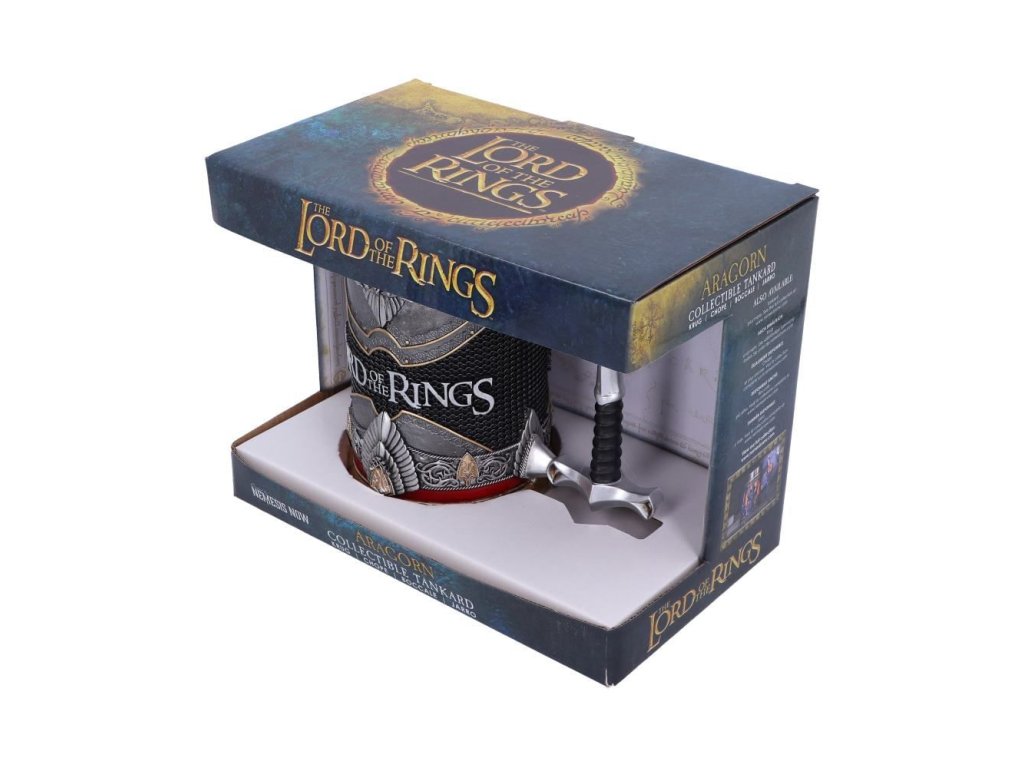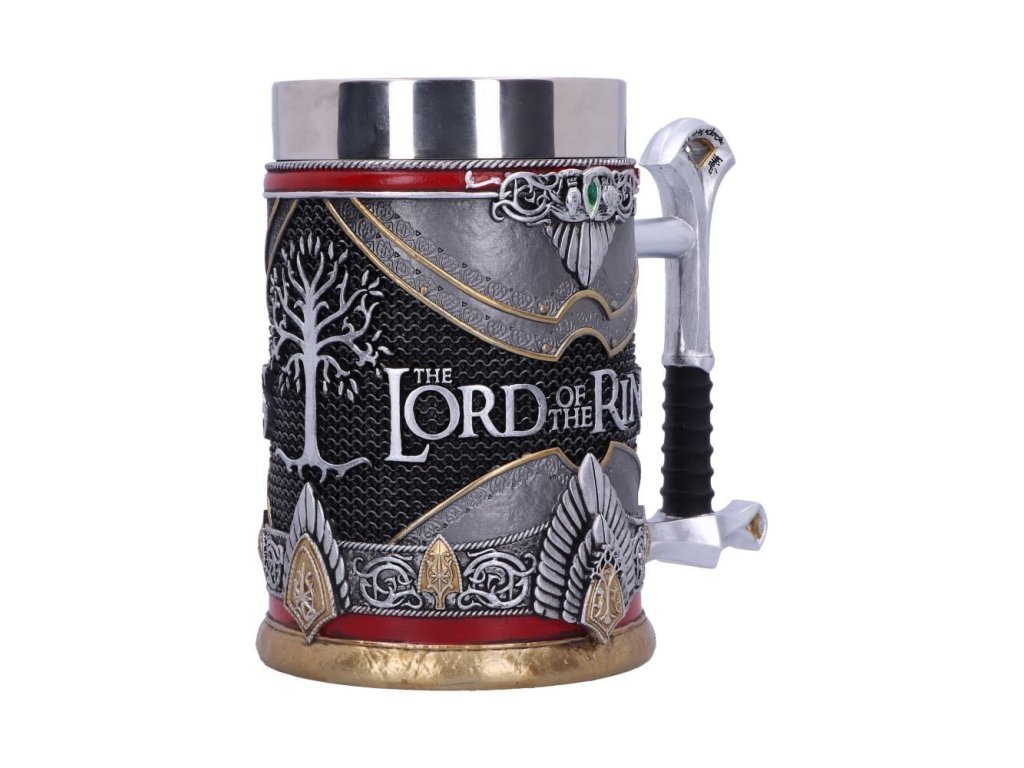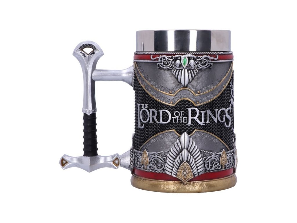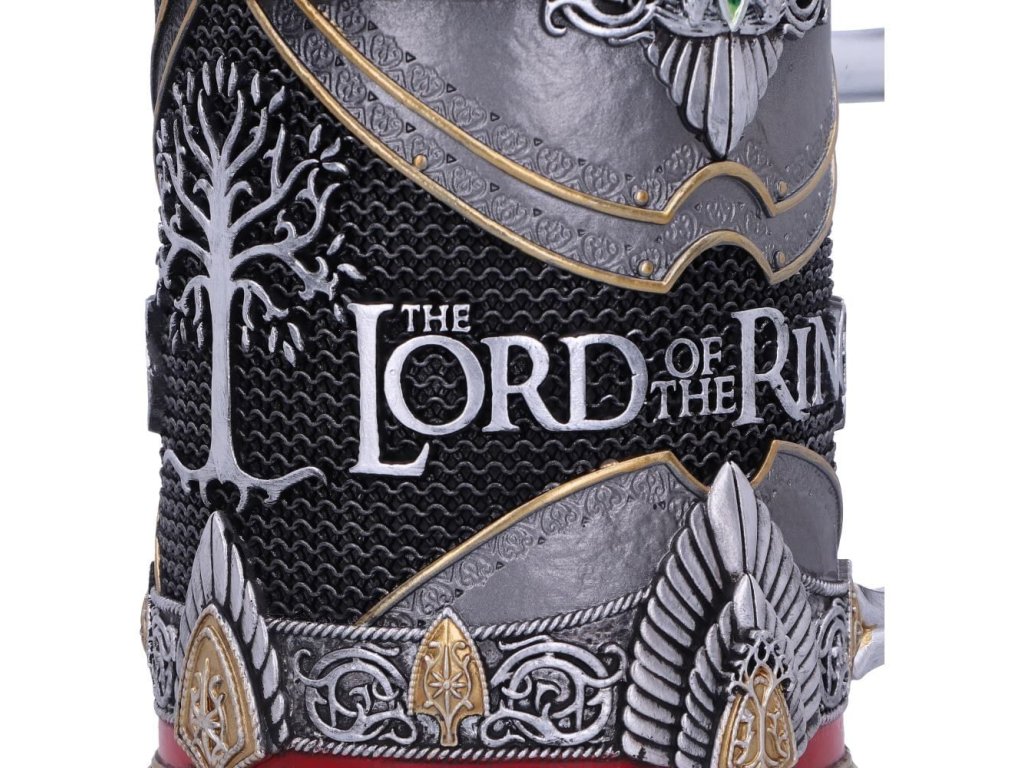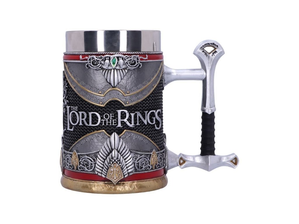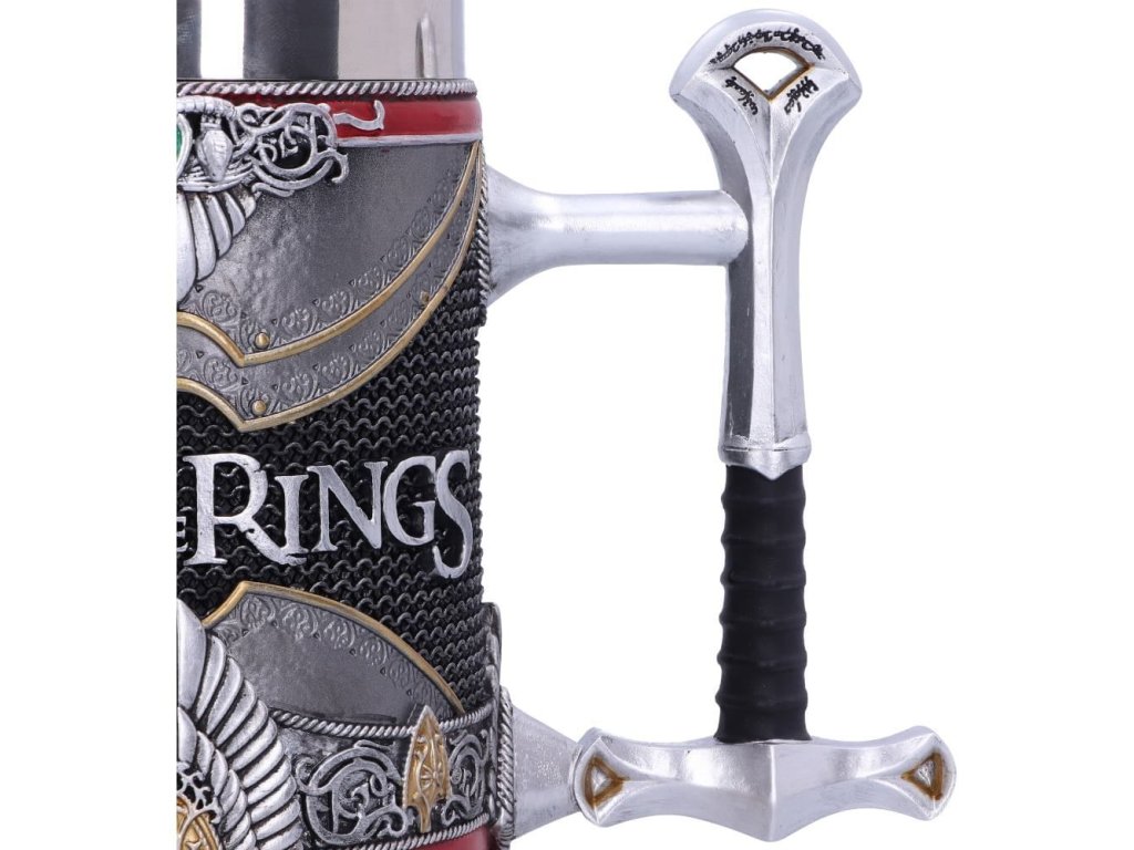 Odlož Hraničáře. Staň se tím, kým ses zrodil. Krásný korbel zdobí atributy Aragorna, krále Elessara: meč Andúril, Bílý strom Minas Tirith a koruna krále Gondoru. Vychutnejte si oblíbený mok z jedinečného korbelu pro fanoušky fantasy ságy Pán prstenů - Lord of the Rings! Korbel má vyjímatelný nerezový vnitřek, což umožňuje jeho snadnou údržbu. Korbel samotný je z resinu a není vhodný do mikrovlnné trouby ani myčky nádobí.