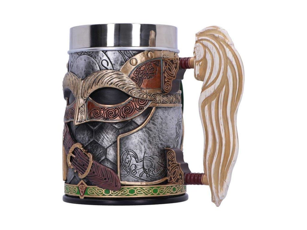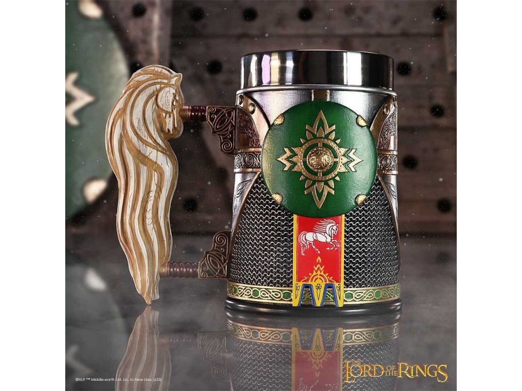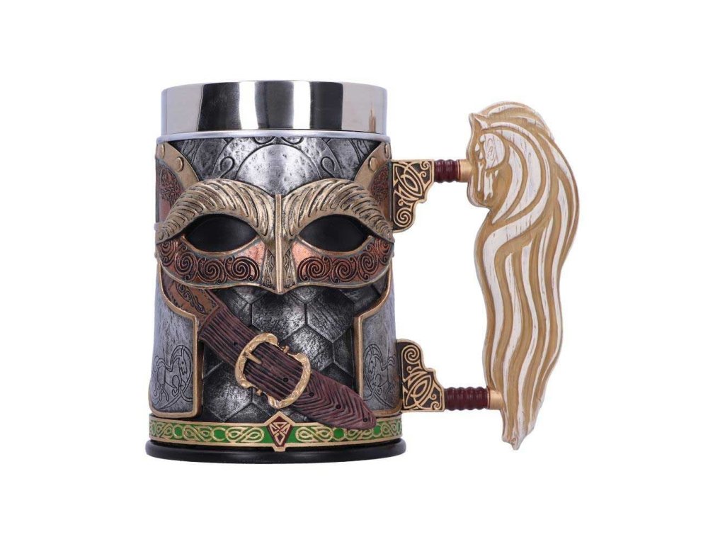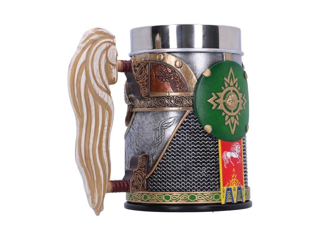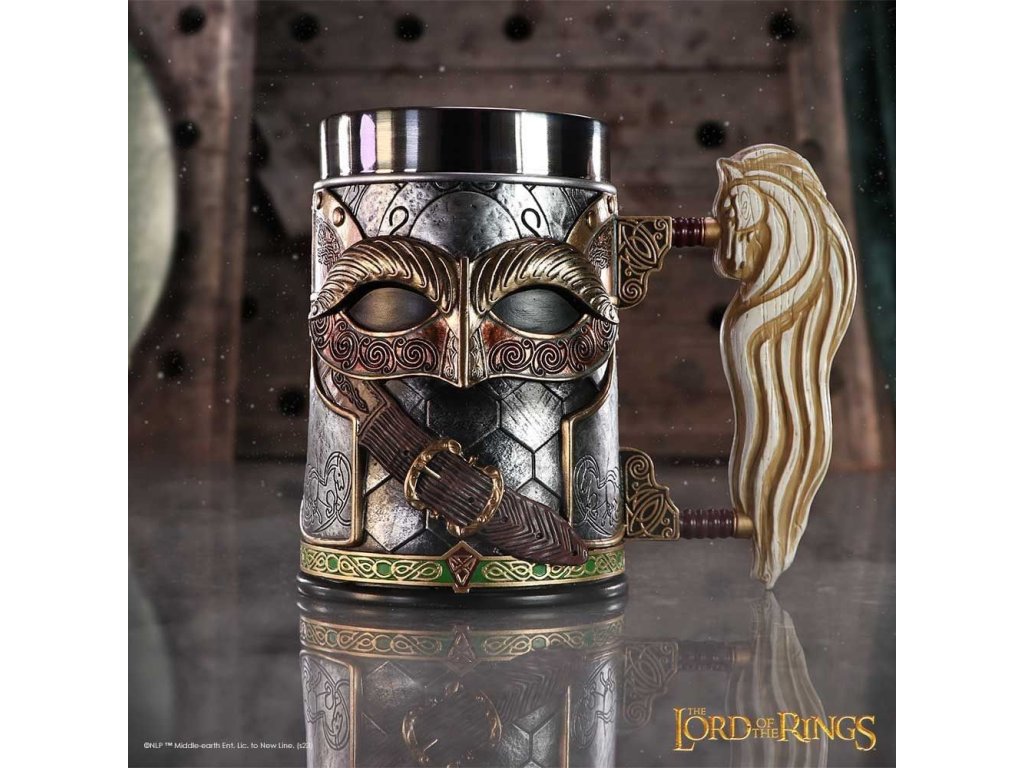 Krásný korbel v podobě zbroje rohanských jezdců pro milovníky Pána prstenů a fantastické Středozemě! Ucho korbelu má tvar koně - symbolu Jízdmarky. Jedinečný dárek pro fanoušky a sběratele! Nerezová vnitřní část je vyjímatelná, což umožňuje snadnou údržbu. Korbel není vhodný do myčky nádobí ani mikrovlnné trouby!