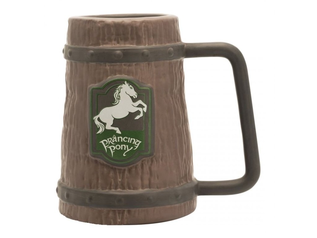 Skvělý keramický 3D korbel s motivem dřeva, obručí a s logem krčmy U Skákavého poníka (Prancing Pony) potěší všechny hobity i chodce! Pěkný dárek pro fanoušky příběhů ze Středozemě z Pána Prstenů od spisovatele J. R. R. Tolkiena. Korbel není vhodný do mikrovlnky a myčky nádobí.