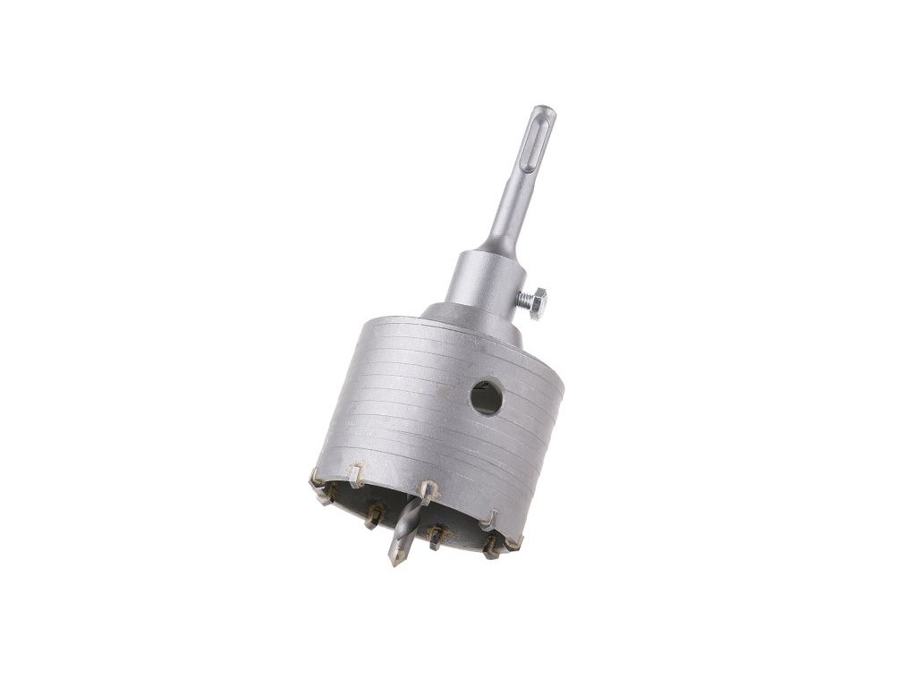 - vykružovací / vrtací korunka s SK plátky a vodícím vrtákem 8 mm