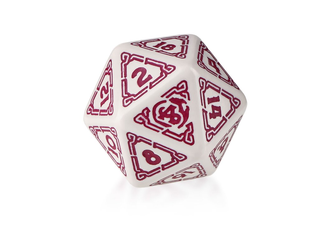 Detailně zpracovaná dvacetistěnná kostka pro RPG Jeskyně a draci. Kostka má místo nejvyššího čísla logo Jeskyní a draků.
