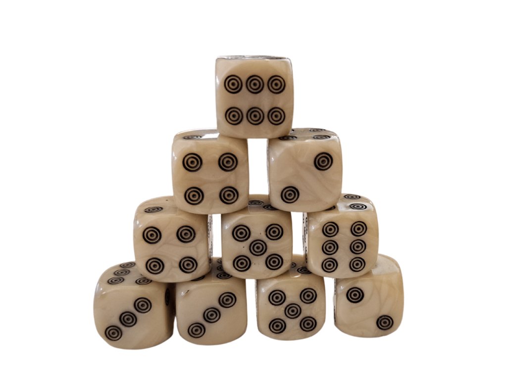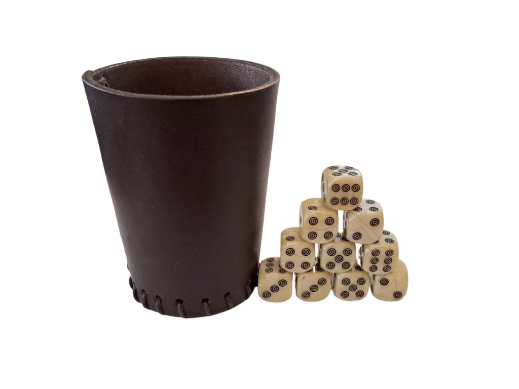 Hospodská hra Farkle se proslavila díky Kingdom Come, ale teď si ji můžeš zahrát i mimo obrazovku – pěkně postaru, s kamarády a pořádnými kostkami. Tato sada obsahuje 6 středověce laděných kostek a pevný kožený kelímek ručně vyrobený v naší dílně. Vezmi si ji do krčmy, na hrad, ke kotlíku v tábořišti nebo do čajovny – Farkle je hra jednoduchá, rychlá a překvapivě napínavá. A když prohraješ? No, tak aspoň stylově. výška kelímku: 10 cm průměr kelímku: 8 cm průměr kostky: 1,5 cm Jak se hraje Farkle Průběh tahu: Hodíš 6 kostkami. Vybereš si jednu nebo více kostek, které dávají body. Můžeš se rozhodnout skončit a připsat si body, nebo pokračovat s neodloženými kostkami. Pokud si již odložil všechny kostky, můžeš házet znovu všemi 6. Pokud v aktuálním hodu nezískáš žádné body (nemůžeš zvolit žádnou koustku/kostky co ti přidají body) ztrácíš všechny body za tento tah a tah končí. Konec hry: Záleží na domluvě hráčů, typicky je to rozsah 2000 - 5000 bodů. Hráč, který jako první dosáhne cílové hodnoty bodů, okamžitě vyhrává hru. Bodování: body získáš za určité kostky či kombinaci kostek. 1️⃣ = 100 bodů 5️⃣ = 50 bodů Tři jedničky = 1 000 bodů Tři dvojky = 200 bodů Tři trojky = 300 bodů Tři čtyřky = 400 bodů Tři pětky = 500 bodů Tři šestky = 600 bodů Každá další stejná kostka = dvojnásobek původní hodnoty (např. čtyři trojky = 600 bodů) Plná postupka od 1 do 6 = 1 500 bodů Vyšší postupka od 2 do 6 = 750 bodů Nižší postupka od 1 do 5 = 500 bodů