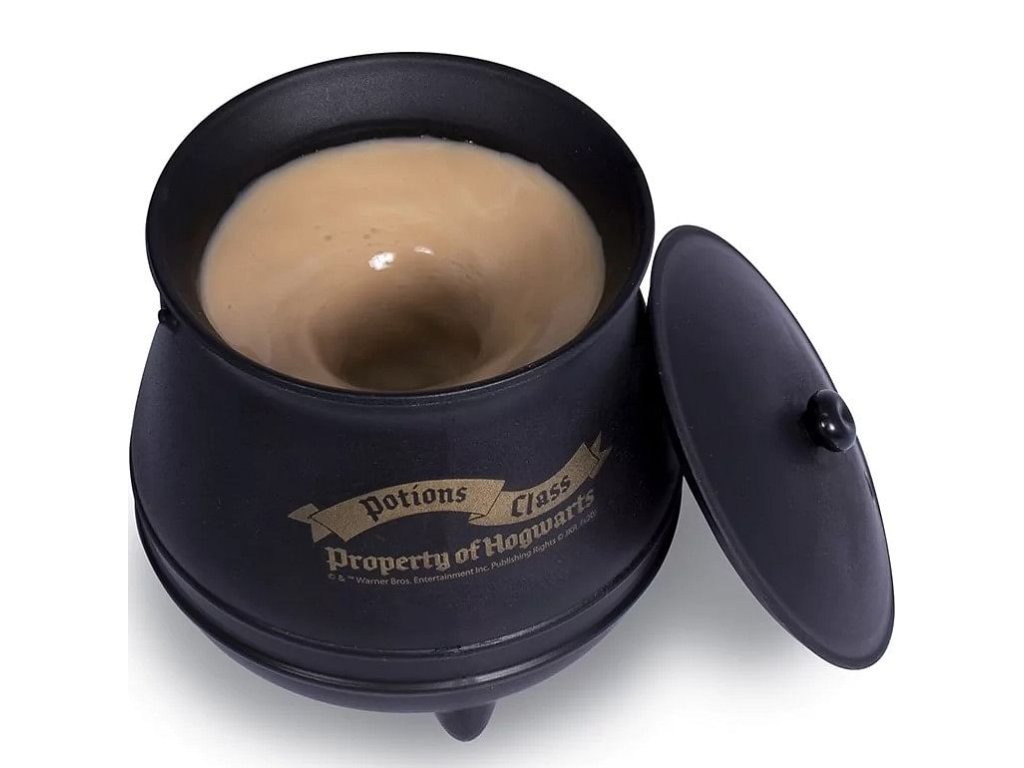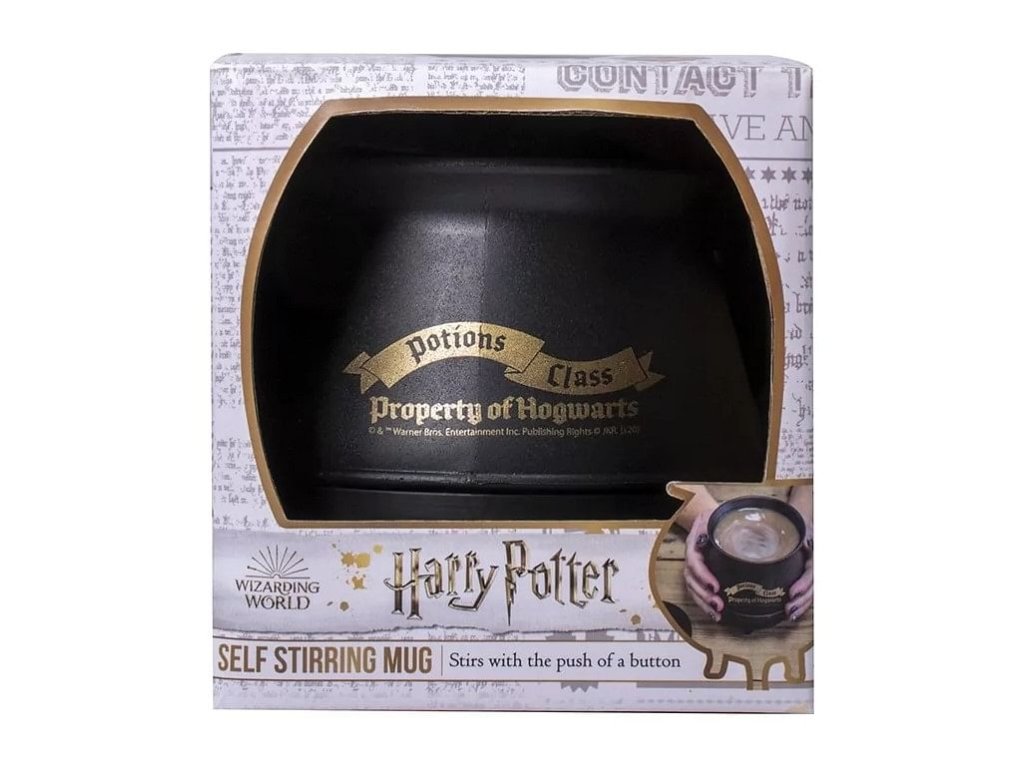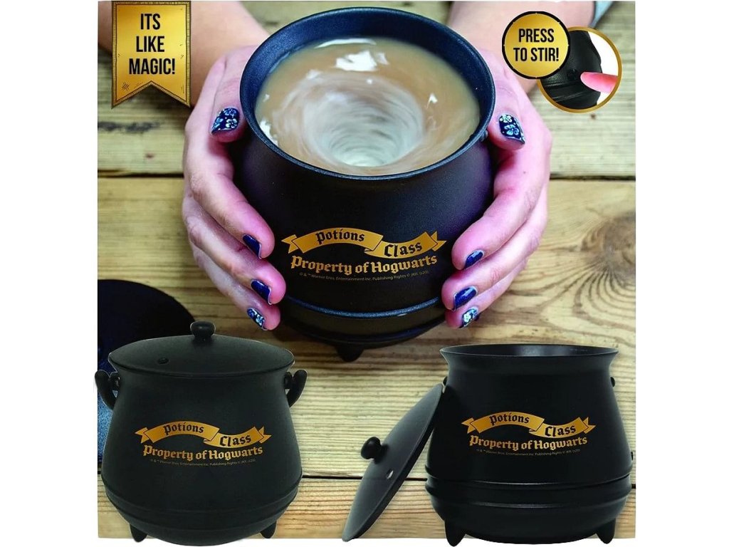 Uvařte si čarovný lektvar v kouzelném kotlíku z Bradavic! Unikátně tvarovaný hrnek s pokličkou pro malé i velké čarodějky a čaroděje bude skvělým dárkem pro fanoušky knih a filmů o Harrym Potterovi. Samomíchací plastový hrnek se napájí pomocí 2 ks baterií AAA (nejsou součástí balení). Kotlík není vhodný do mikrovlnky ani myčky nádobí.