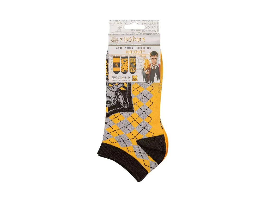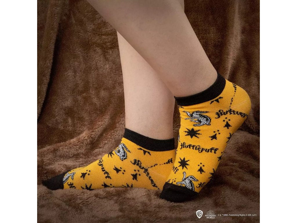 Sada obsahuje 3 páry kotníkových ponožek pro čarodějky a mágy z Mrzimoru, koleje z bradavické školy čar a kouzel. Originální doplněk oblečení či kostýmu pro fanoušky příběhů o Harry Potterovi. Ponožky mají jednu univerzální velikost (US 4-11 / EU 35-45 / UK/IRL 2-10).