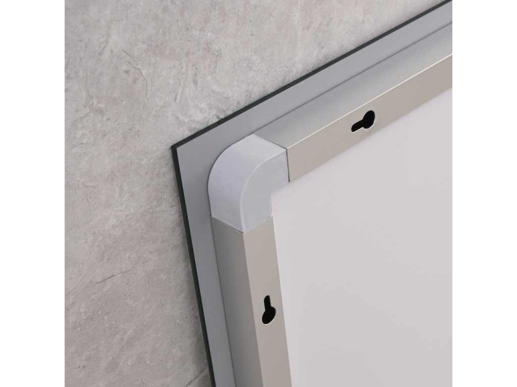 Zrcadlo Mixxus MR12-90×70-REVERSE Warm v reverzním provedení představuje elegantní a funkční doplněk do moderní koupelny. Díky obdélníkovému tvaru a hliníkovému rámu působí stylově a harmonicky zapadá do různých interiérů. Zrcadlo je vybaveno čelním LED podsvícením s dotykovým ovládáním, které umožňuje regulovat jas i barevnou teplotu světla podle aktuální potřeby. Vyhřívání zajišťuje, že povrch zůstává průzračný i při zvýšené vlhkosti, takže odraz je vždy čistý a ostrý. Vestavěný regulátor jasu přispívá k pohodlnému nastavení světelné atmosféry — ať už pro ranní přípravy nebo večerní relax.