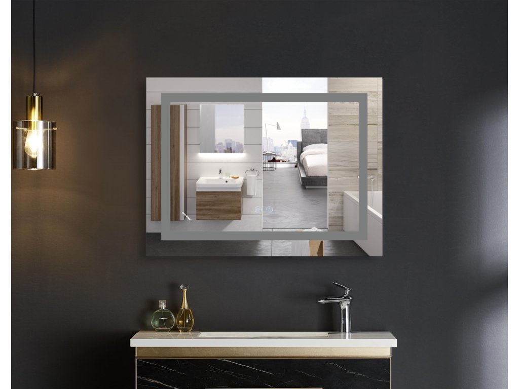Koupelnové zrcadlo s LED osvětlením, protizamlžovací funkcí a regulací jasu, WARM MR12-80х60-REVERSE | MR12-80×60-REVERSE Warm