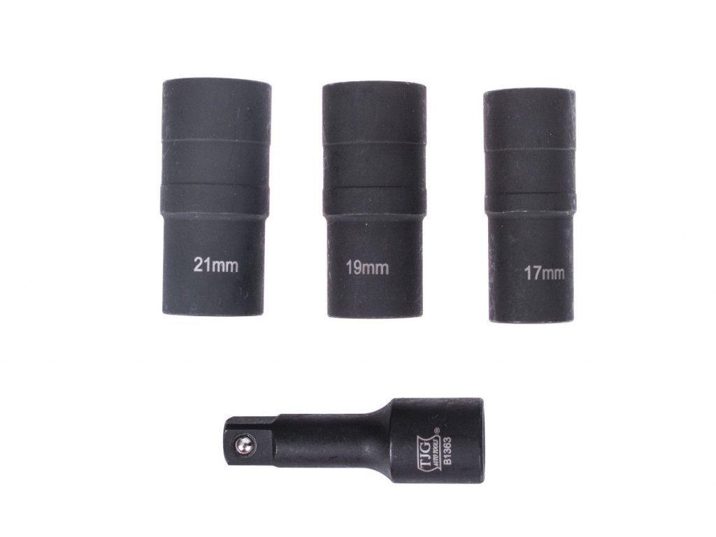 Velikosti: 17, 19, 21 mm, čtyřhran 1/2", šestihranné a dvanáctihranné. Slouží na poškozené bezpečnostní šrouby.