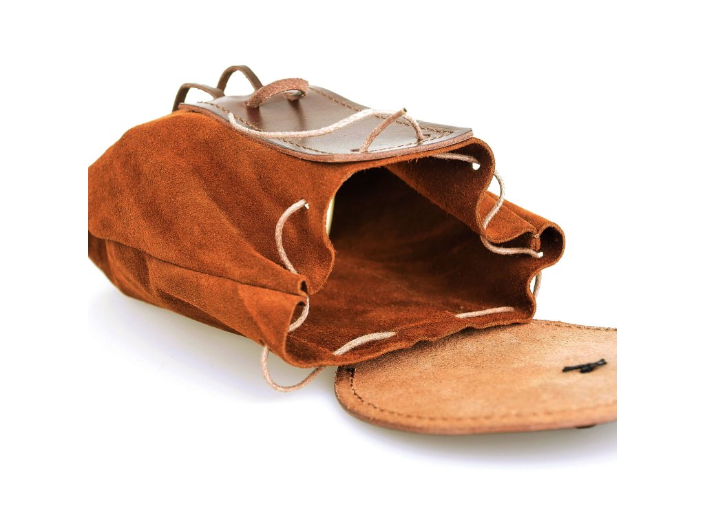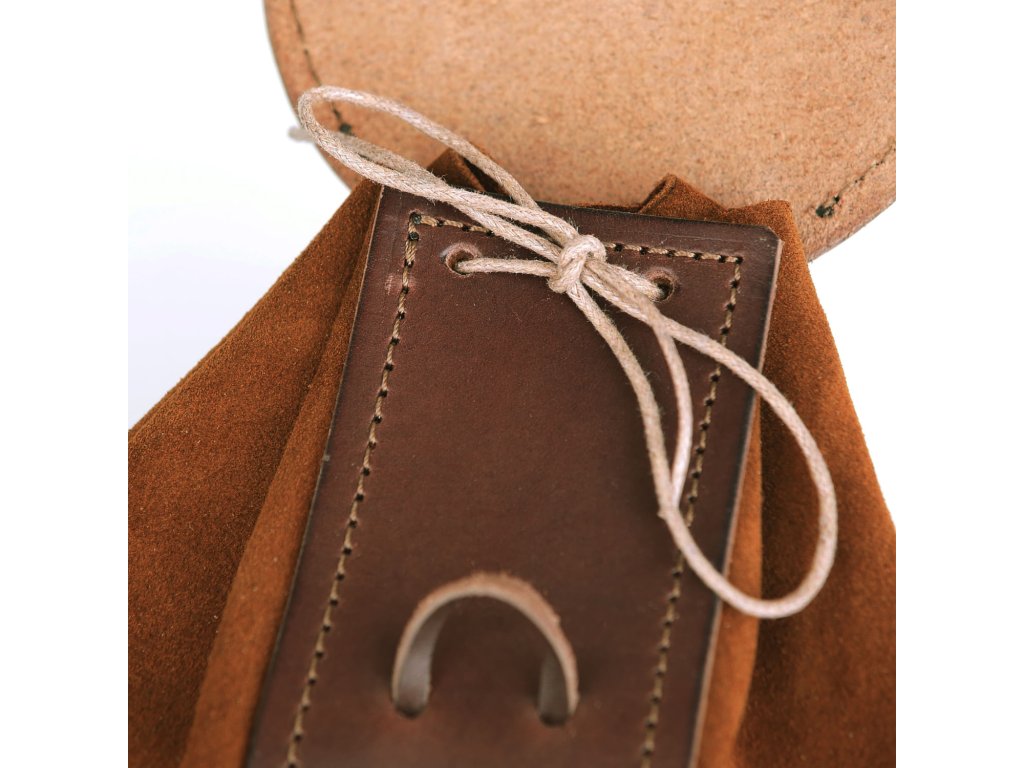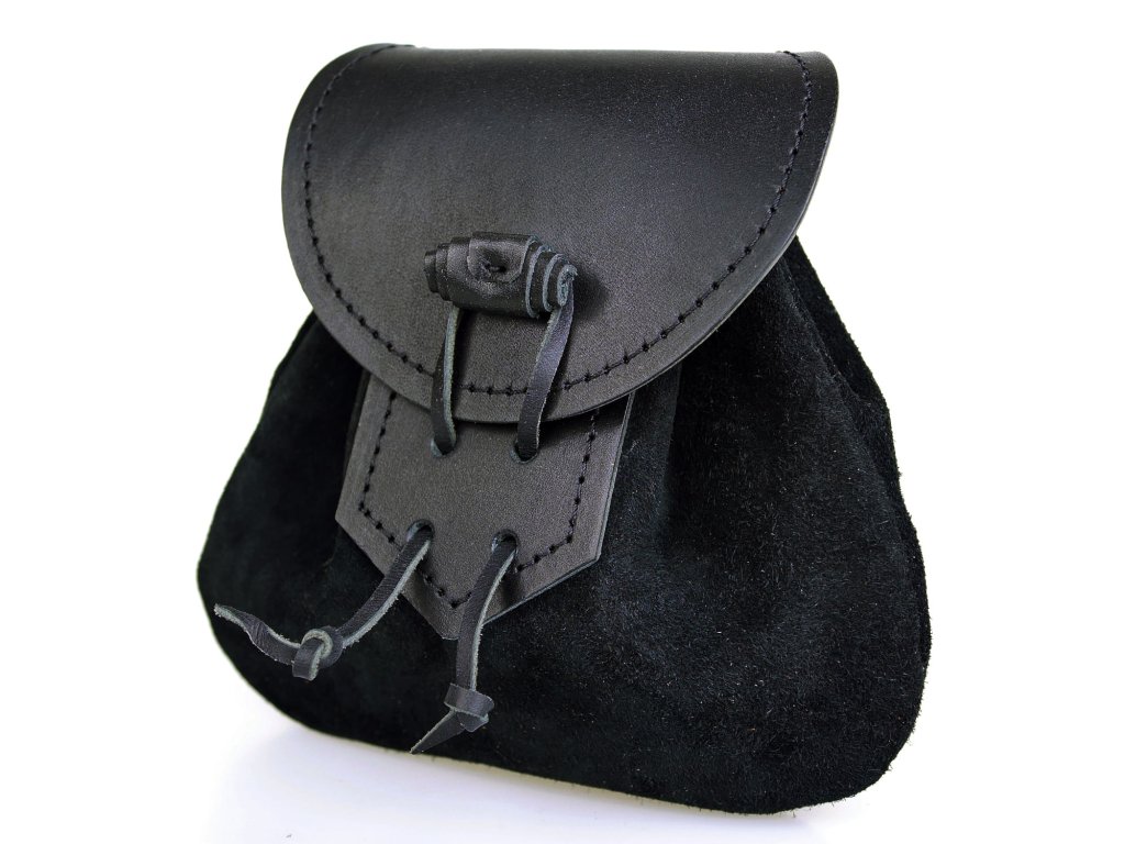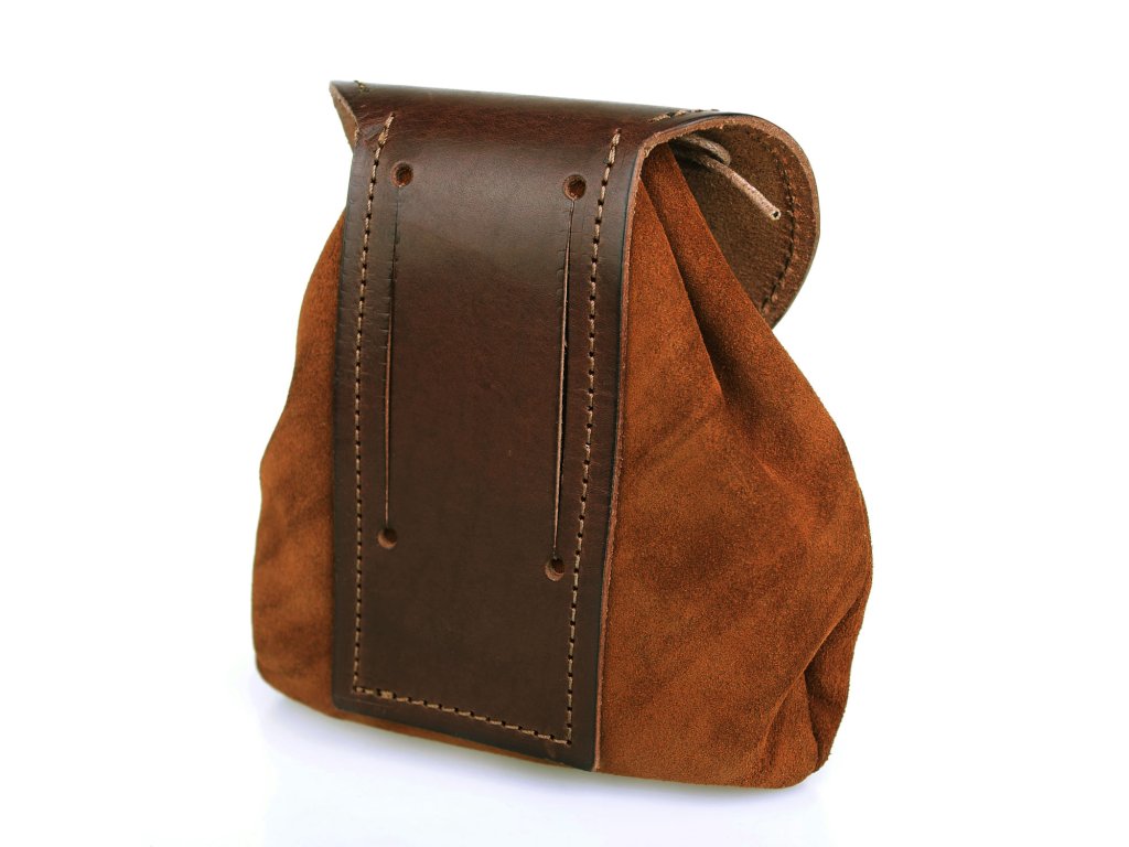 Elegantní kožená taštice s víkem je určena k nošení na opasku. Hlavní část je zhotovena z tzv. štípenky, víko je z 2 mm hrubé hlazené kůže. Má pevné švy, je ručně vyrobena z kvalitní kůže v naší brašnářské dílně. Taštice je praktickým doplňkem pro libovolný fantasy či historický kostým, pojme všelijaké drobnosti, proti otevření je zajištěna zapínáním kožený knoflík.