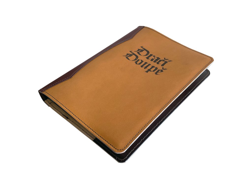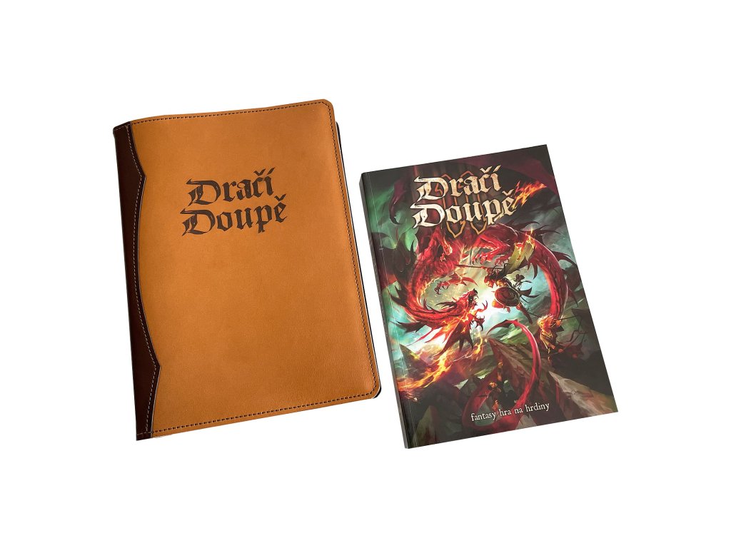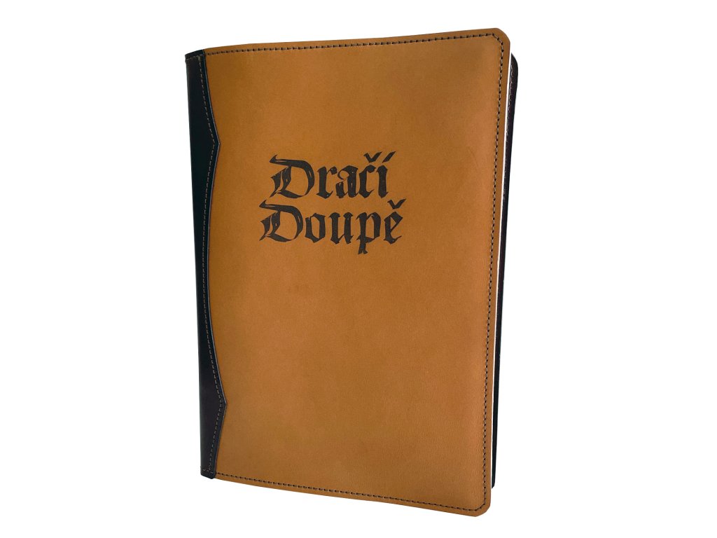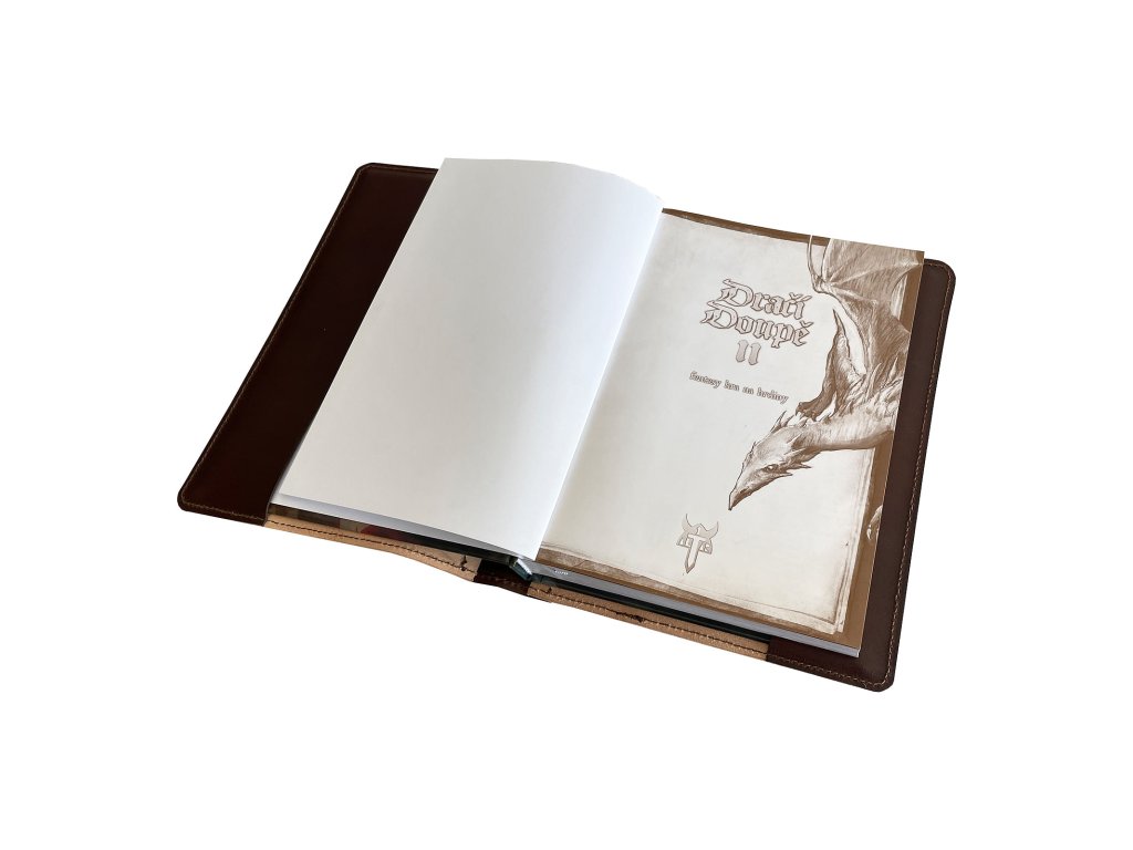 Originální kožený obal na knihu Dračí doupě II s logem této legendární RPG hry od Altaru vznikl na přání v našem brašnářství. Pro všechny nadšené hráče a fanoušky jsme ho vyrobili ze 100% hovězí kůže. Zabalte svou knihu do jedinečného koženého obalu. Nejen, že ji ochráníte před všemi vnějšími vlivy, které na ni mohou číhat v batohu, tašce či na stole, ale zároveň si pořídíte jedinečný doplněk, který vám budou ostatní hráči tiše závidět. Obal se také skvěle hodí jako dárek. Logo je vytvořeno gravírováním na kůži, následně byl kožený obal ošetřen lakem, který ho chrání proti opotřebení. Obal jsme vytvořili na míru pravidlům Dračího doupěte II v pevné vazbě. Samozřejmě se do něj vejde i brožovaná varianta pravidel, ale obal nebude sedět dokonale.