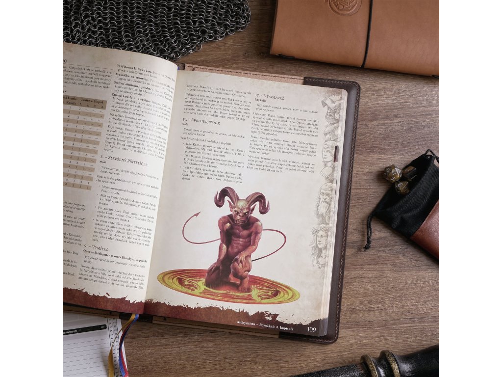 Originální kožený obal na knihu Jeskyně a draci s motivem z této oblíbené RPG hry vznikl v našem brašnářství ze 100% hovězí kůže pro všechny nadšené hráče a fanoušky. Zabalte svou knihu do jedinečného koženého obalu. Nejen, že ji ochráníte před všemi vnějšími vlivy, které na ni mohou číhat v batohu, tašce či na stole, ale zároveň si pořídíte jedinečný doplněk, který vám budou ostatní hráči tiše závidět. Obrázek na koženém obalu vznikl gravírováním na kůži, následně byl ošetřen lakem, který obrázek chrání proti opotřebení. A co kostky, válí se vám po kapsách, když se chystáte na nějakou hráčskou akci? Mrkněte na váček na kostky Jeskyně a draci, který vznikl v naší krejčovské dílně. Vybrat si můžete ze tří barevných provedení.