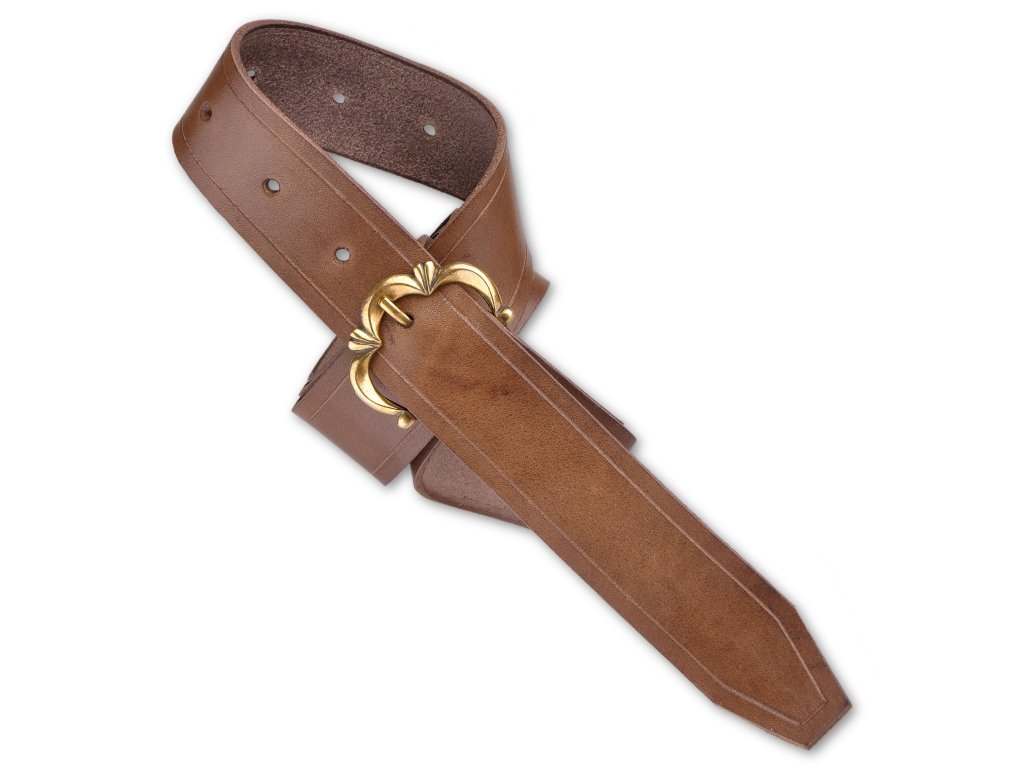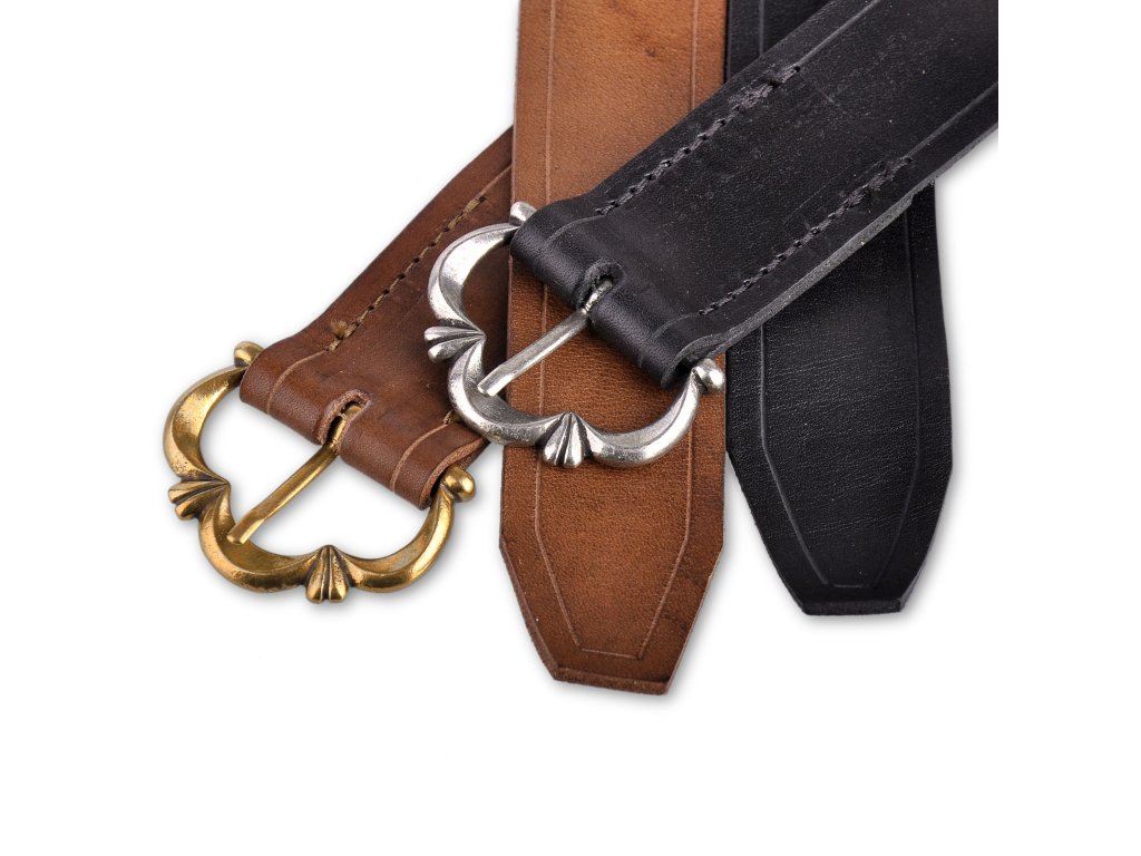 Kožený opasek s kovovou přezkou středvěkého vzhledu. Opasek má dírky v rozmezí obvodu pasu cca 90 - 110 cm. Na přání můžeme vyrobit opasek dle požadovaných parametrů, například delší než 130 cm, jiná barva a pod. V případě zájmu nás neváhejte kontaktovat, nebo napište požadavek do poznámky k objednávce.