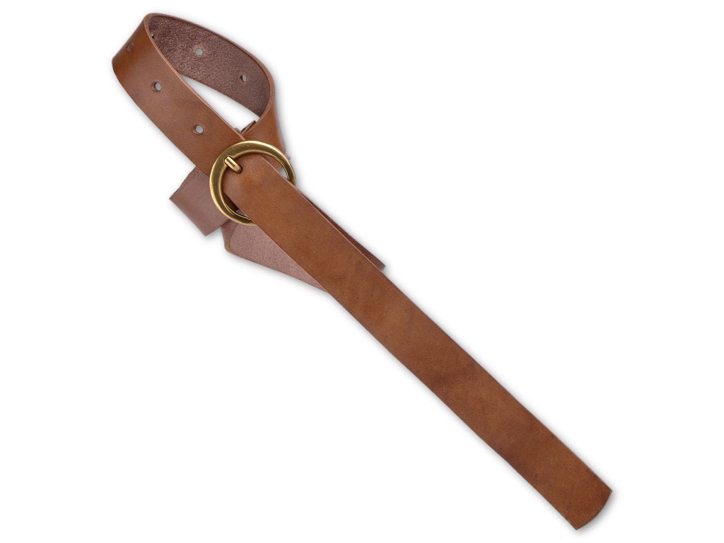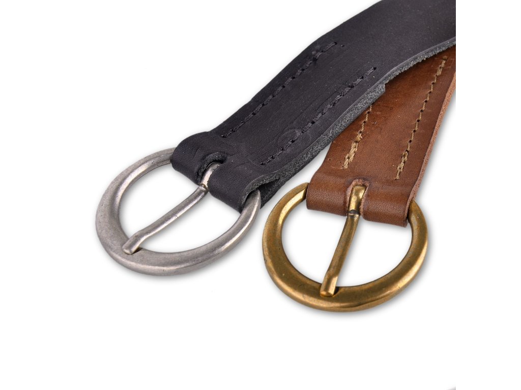 Kožený opasek s jednoduchou kulatou kovovou přezkou. Opasek má dírky v rozmezí obvodu pasu cca 90 - 110 cm. Tloušťka kůže je zhruba 3,5-4mm. Na přání můžeme vyrobit opasek dle požadovaných parametrů, například delší než 130 cm, jiná barva a pod. V případě zájmu nás neváhejte kontaktovat, nebo napište požadavek do poznámky k objednávce.