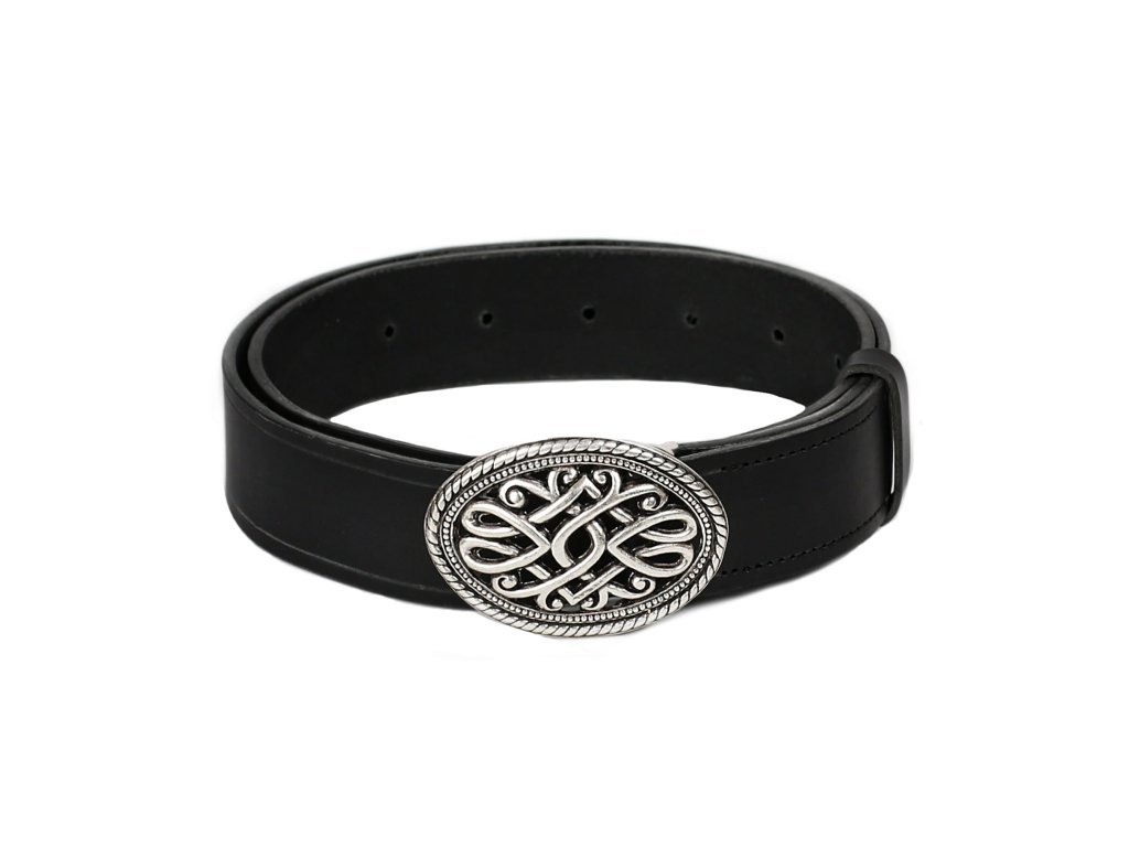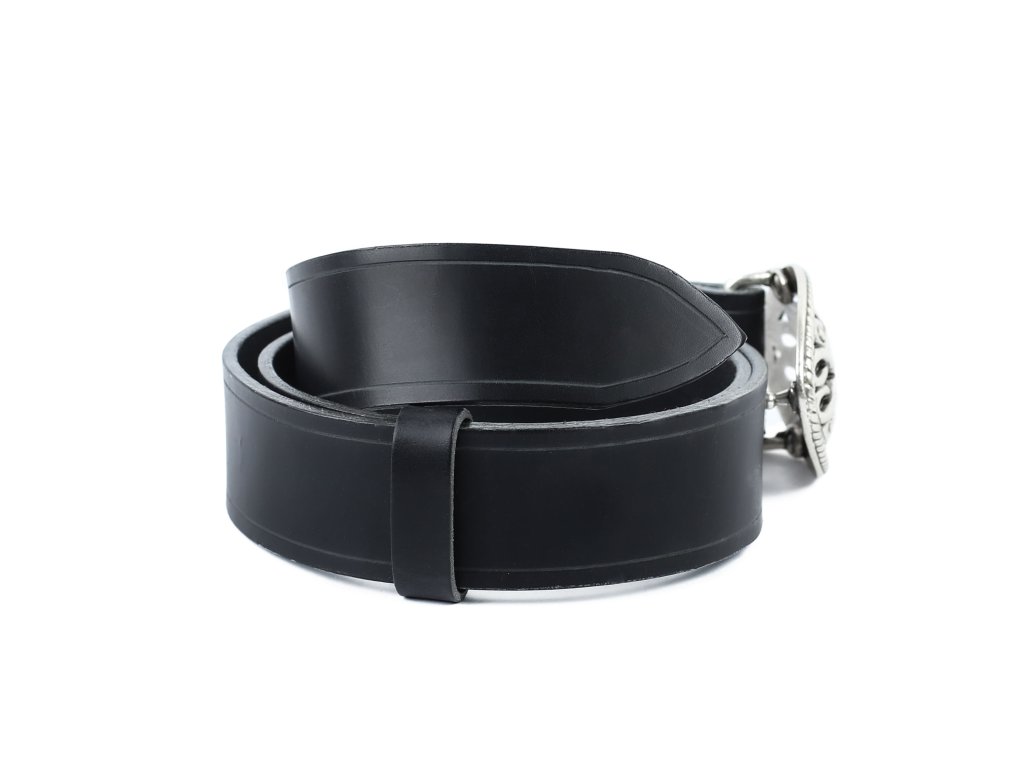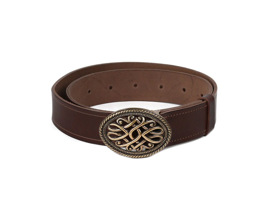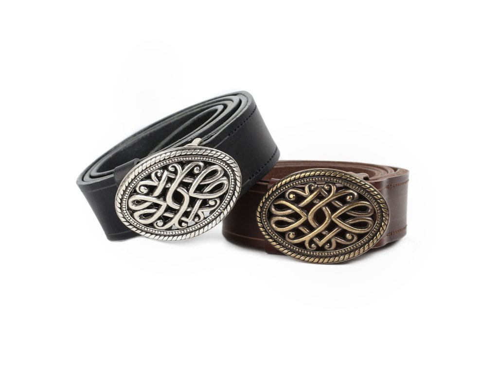 Dámský opasek nese jméno Sigur, jenž znamená vítězství, po kterém tak často toužíme, když vyrážíme na dřevárně do bitevní vřavy. Kvalitní kožený opasek zdobí masivní kovová spona s proplétaným fantasy motivem a jednoduché ryté čáry lemují opasek po jeho okrajích. Opasek má trnové zapínání a dírky v rozmezí obvodu pasu cca 67 - 91 cm. Je zhotoven ve dvou variantách: z hnědé kůže se sponou v odstínu staromosazi a z černé kůže se stříbrně zbarvenou sponou. Opasek Sigur bude skvělým doplňkem k pánským kostýmům z naší dílny. Hodí se ke kalhotům i jako ozdobný opasek na svrchní tuniku. Na přání můžeme vyrobit opasek dle požadovaných parametrů, například delší než 110 cm, jiná barva a pod. V případě zájmu nás neváhejte kontaktovat, nebo napište požadavek do poznámky k objednávce.