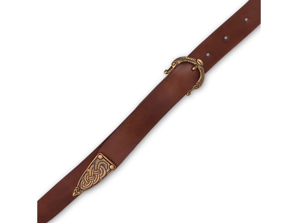 Stylový kožený opasek šíře 3 cm, tloušťky přibližně 3,5 - 4 mm. Spona i nákončík jsou zdobeny zvířecími motivy inspirovanými severskou mytologií. Opasek má dírky v rozmezí obvodu pasu cca 88 - 110 cm. Na přání můžeme vyrobit opasek dle požadovaných parametrů, například delší než 130 cm, jiná barva, bez nákončí a pod. V případě zájmu nás neváhejte kontaktovat, nebo napište požadavek do poznámky k objednávce.