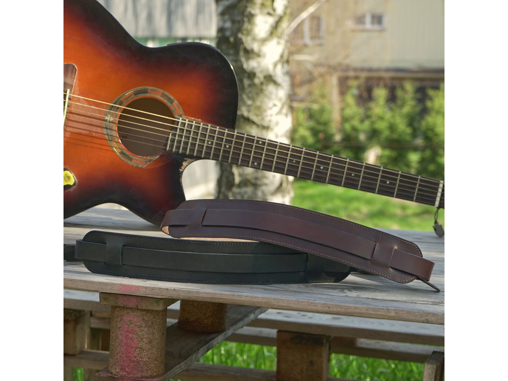 Už vás nebaví textilní popruhy a chcete povýšit svou kytaru na další level? Naše dílna si pro vás připravila luxusní kožený popruh na akustickou nebo elektroakustickou kytaru. Kvalitní přezka zajistí, abyste si nastavili kytaru do výšky, na kterou jste zvyklí. Rozšířená část se pak postará o vaši pohodu při hraní, a zaručí, aby vás popruh netlačil na krku a rameni. Ruční výroba v ČR, konkrétně v naší dílně - s láskou k brašnářskému řemeslu i k hudbě. K mání ve dvou barevných variantách: hnědá a černá. Tloušťka kůže: 2,5 mm Šířka: 2,4 cm / 6 cm Minimální délka: 116 cm Maximální délka: 146 cm