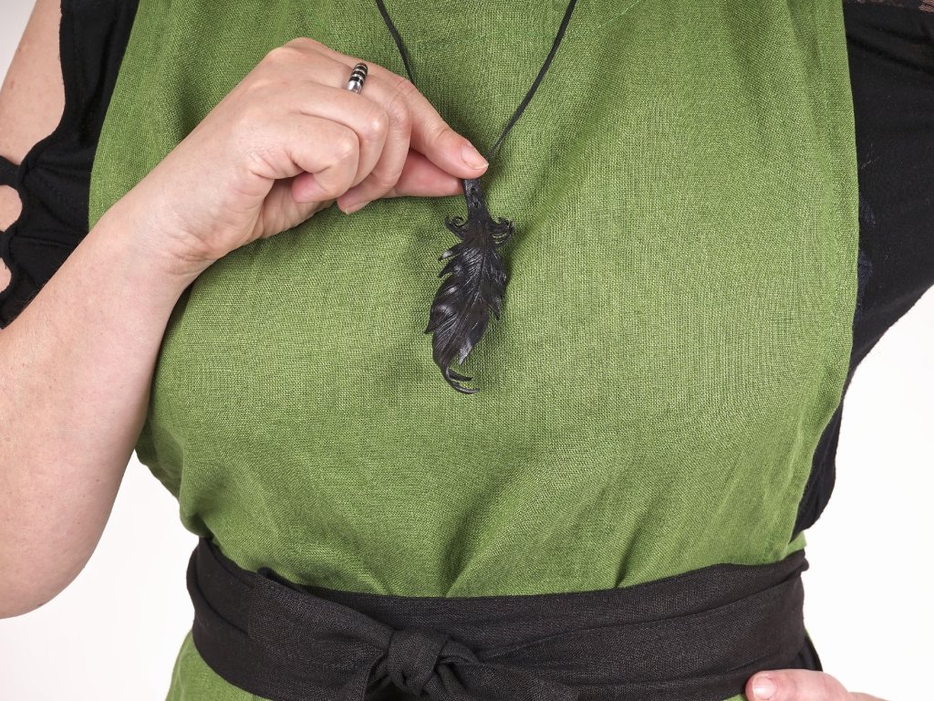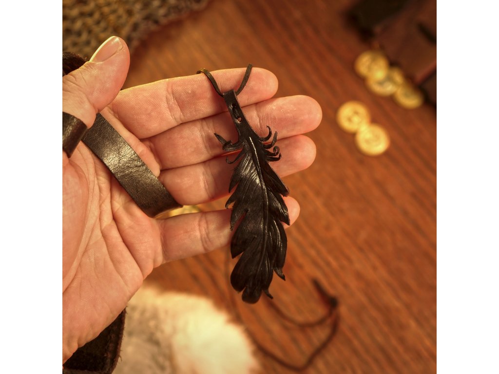 Originální ručně vyráběný přívěsek Havraní pírko ze 100% hovězí kůže nejen pro milovníky magie, havraního tarotu, ornitology a příznivce Havraspáru. Ale i pro běžné smrtelníky, kteří vyhledávají jedinečné doplňky. Havraní pírko můžete využít jako záložku do knihy, přívěsek na krk či na kabelku, jako amulet, brož či náušnici nebo pro výrobu jiné odvážnější dekorace. Fantazii se meze nekladou. Každé pírko je originál! Havraní pírko je pouze v černé barvě, dodáváme včetně kožené šňůrky. Pokud hledáte další kožený přívěsek do své sbírky, mrkněte na náš dubový lístek.