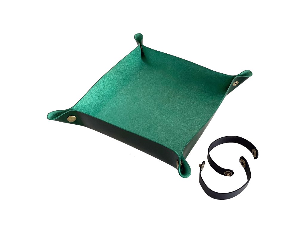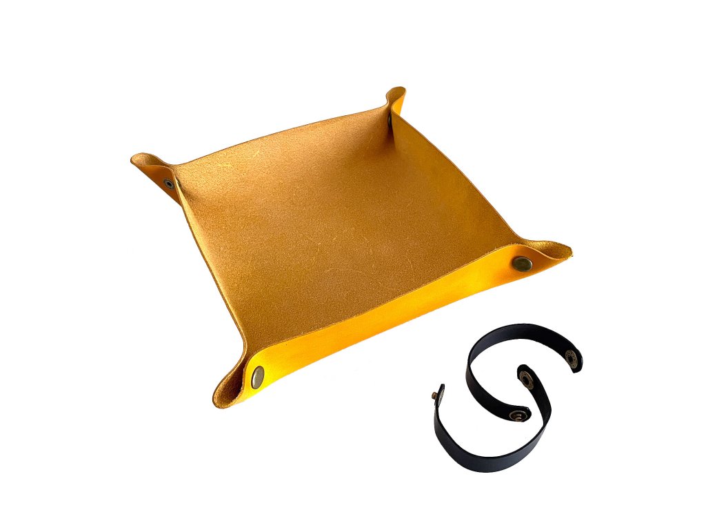 Nádherná barevná podložka vyrobená z prvotřídní hovězí kůže, která se perfektně hodí pro hraní RPG i k deskovkám u kterých chřestí kostky. Podložku na házení kostek snadno stočíte do ruličky, sepnete kovovými druky a můžete vyrazit na cesty. Díky stylovému dice trayi už se vám žádná kostka nezakutálí z dosahu a můžete ji bez obav využít pro hody kovovými kostkami. Hodí se i jako perfektní dárek pro vášnivé hráče deskovek a Dungeon Mastery. Rolovací Dice Tray vyrábíme i z měkké velurové kůže. Rozměry: zavinuté: 25 x 4 cm v rozvinutém stavu: 25 x 25 cm složené: cca 17 x 17 x 4 cm